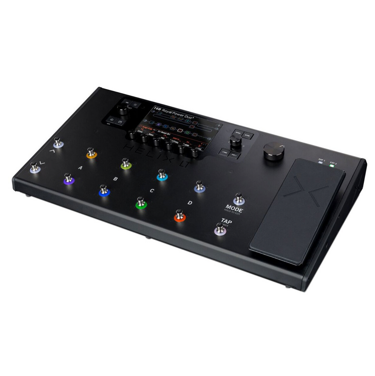 The streamlined Helix® LT boasts the same dual-SHARC® processing and professional-quality HXTM Modeling found in the flagship Helix Floor and Helix Rack amp and effects processors—outperforming all other products in its class. Features include a player-friendly interface with a large color LCD, capacitive-touch footswitches for easy editing, an onboard expression pedal, analog and digital I/O, and a USB audio interface.