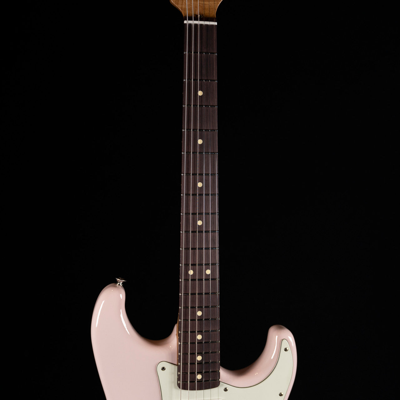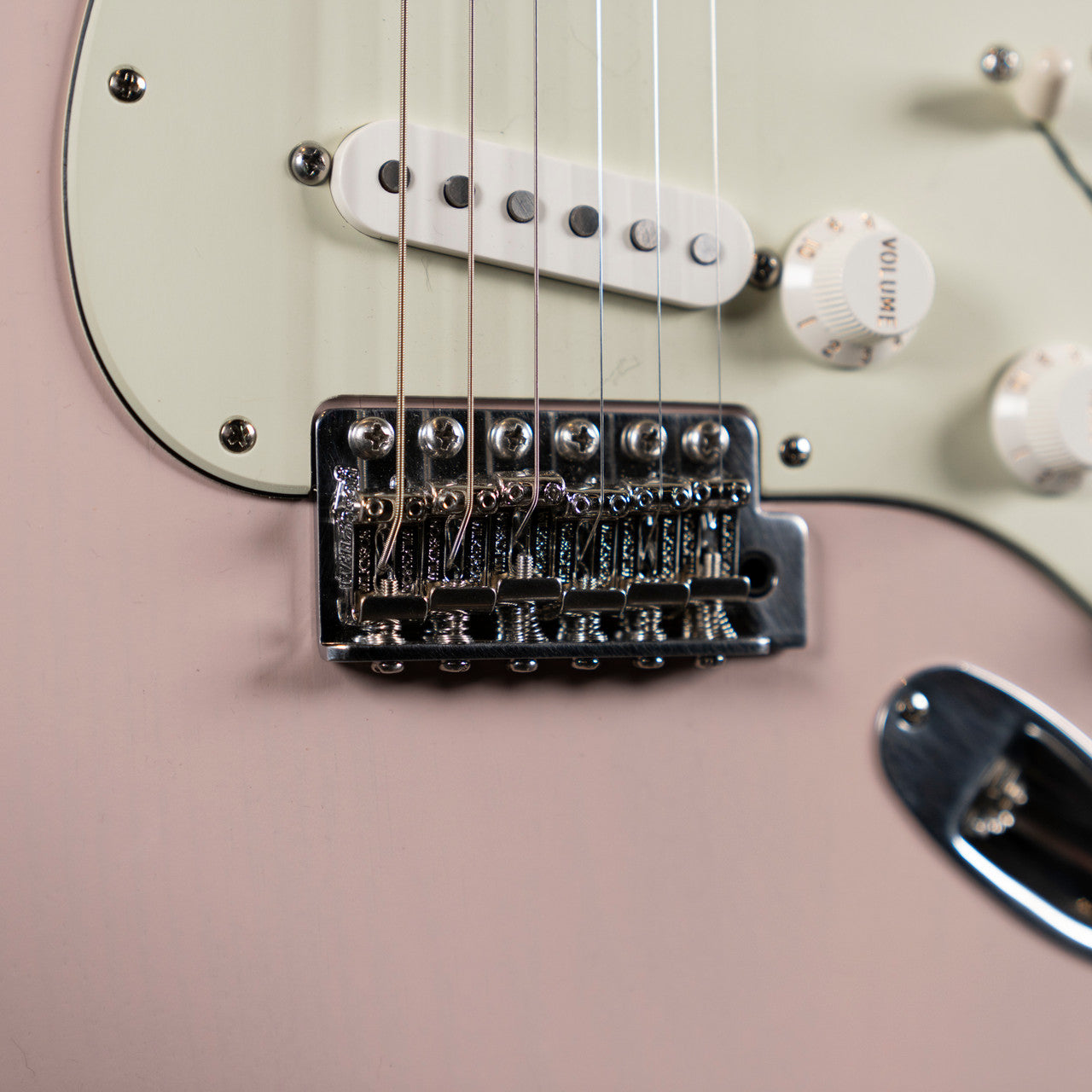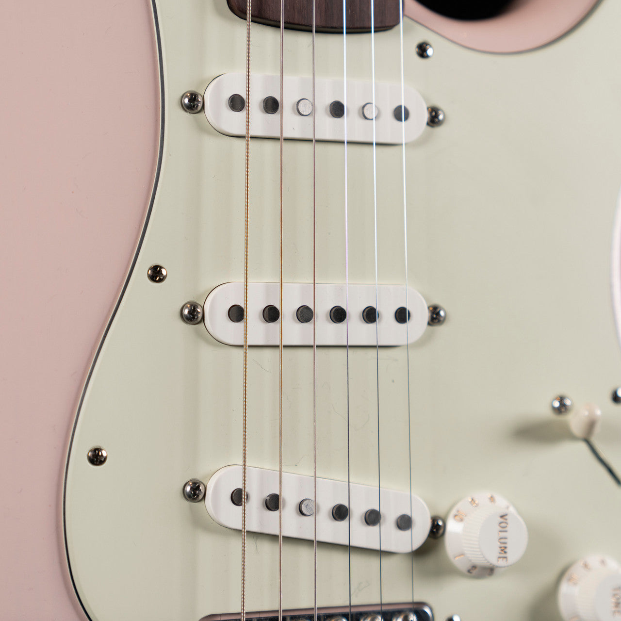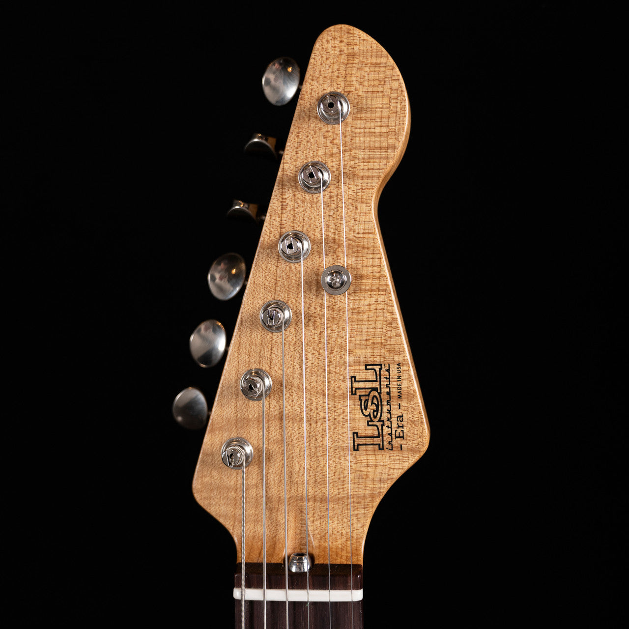 The LSL Era Saticoy in Faded Shell Pink is a high-end, boutique-crafted electric guitar that combines the classic aesthetic and feel of a traditional S-style guitar with modern enhancements. Its lightweight, resonant alder body is finished in a striking Faded Shell Pink, which allows the wood grain to subtly shine through while offering a rich, vintage-inspired look. The bolt-on maple neck features a 25.5" scale length and is fitted with a 9.5" radius rosewood fretboard, providing a smooth, comfortable playing experience with excellent note articulation and clarity. The neck sports a vintage-style C-shape profile, making it ideal for both rhythm and lead players. Equipped with Seymour Duncan single-coil pickups, the guitar offers a dynamic, punchy tone with a bell-like clarity in the neck position, a snappy midrange in the bridge, and a balanced presence across all positions. With its quality craftsmanship, tone versatility, and sleek, ergonomic design, the LSL Era Saticoy in Faded Shell Pink is a standout instrument for discerning players looking for a refined yet classic feel.