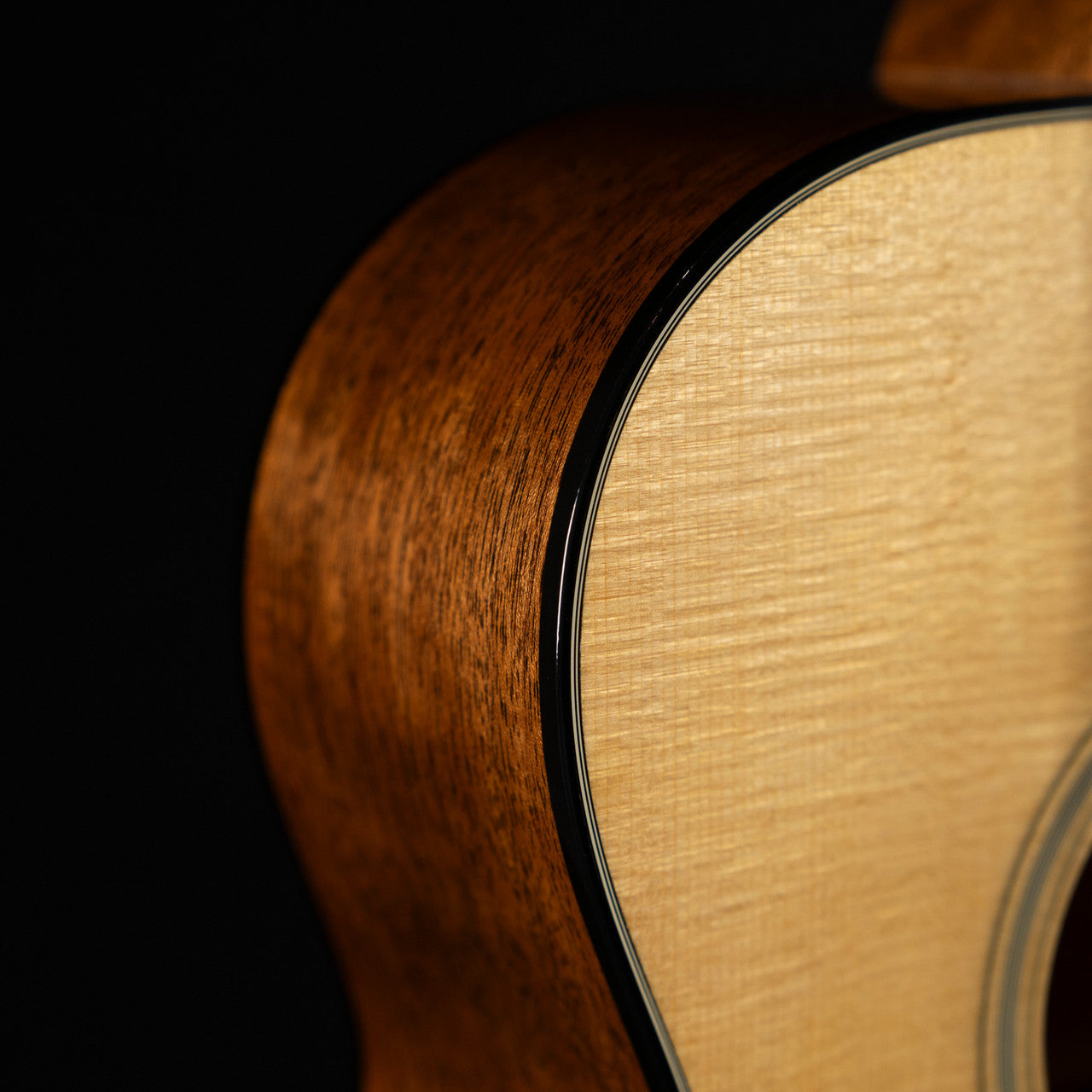 While often overshadowed by its larger counterparts, the mighty 00-18 Standard Series acoustic guitar holds its own in tone and articulation. This guitar offers a warm, soft voice when played gently and a lively, bold bark when you dig in. Its shorter scale length makes bending notes effortless, and with a strap, it’s incredibly comfortable—arguably the perfect size for any player. It feels like an extension of your body, striking a perfect balance: big enough to project beautifully, yet compact enough for easy handling.