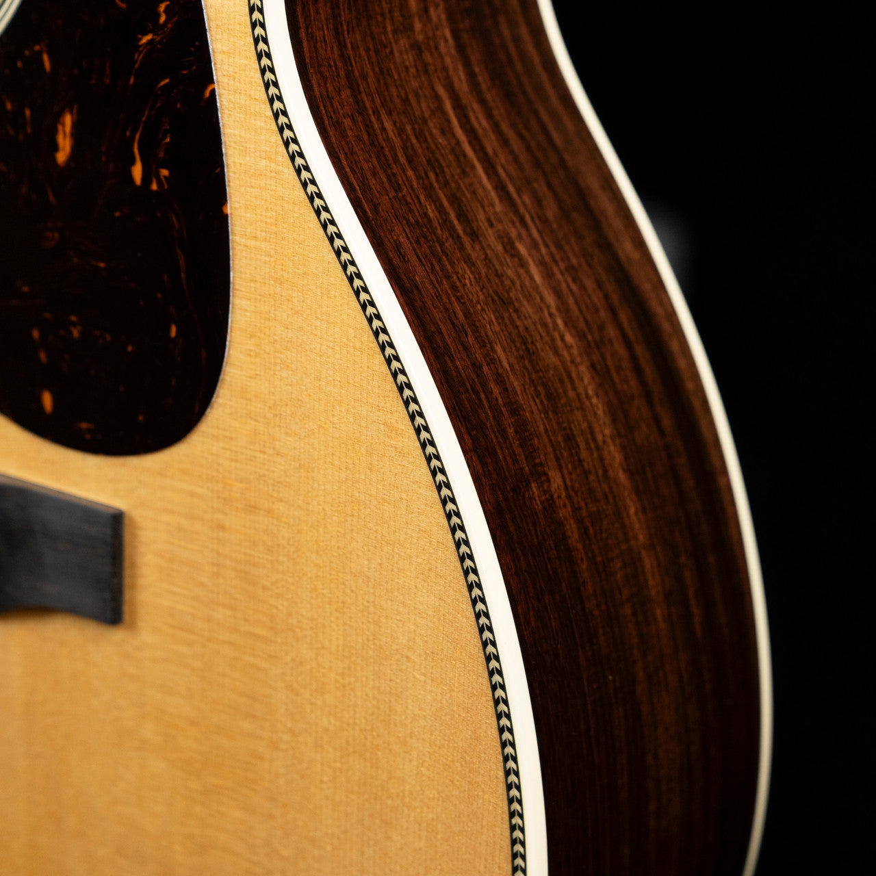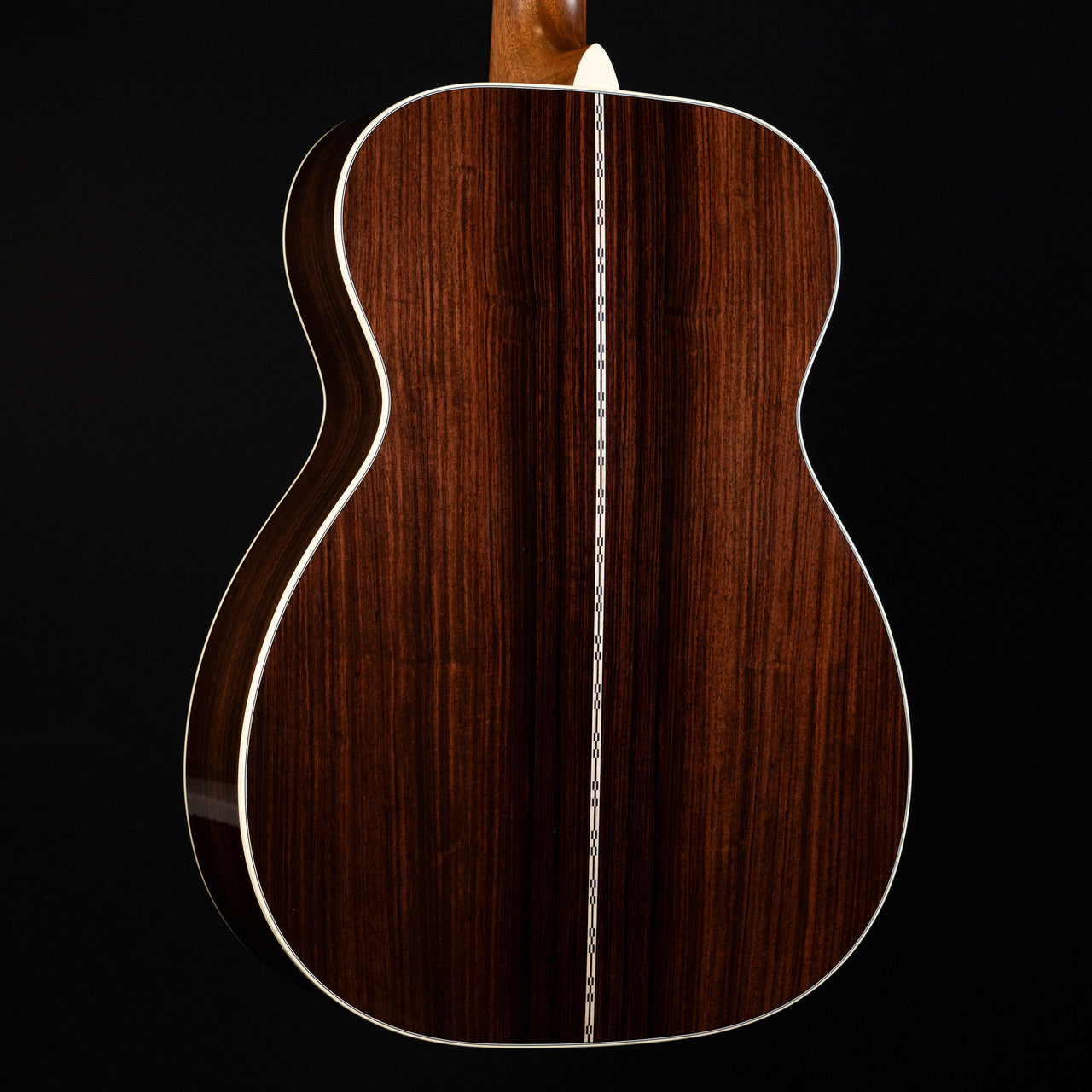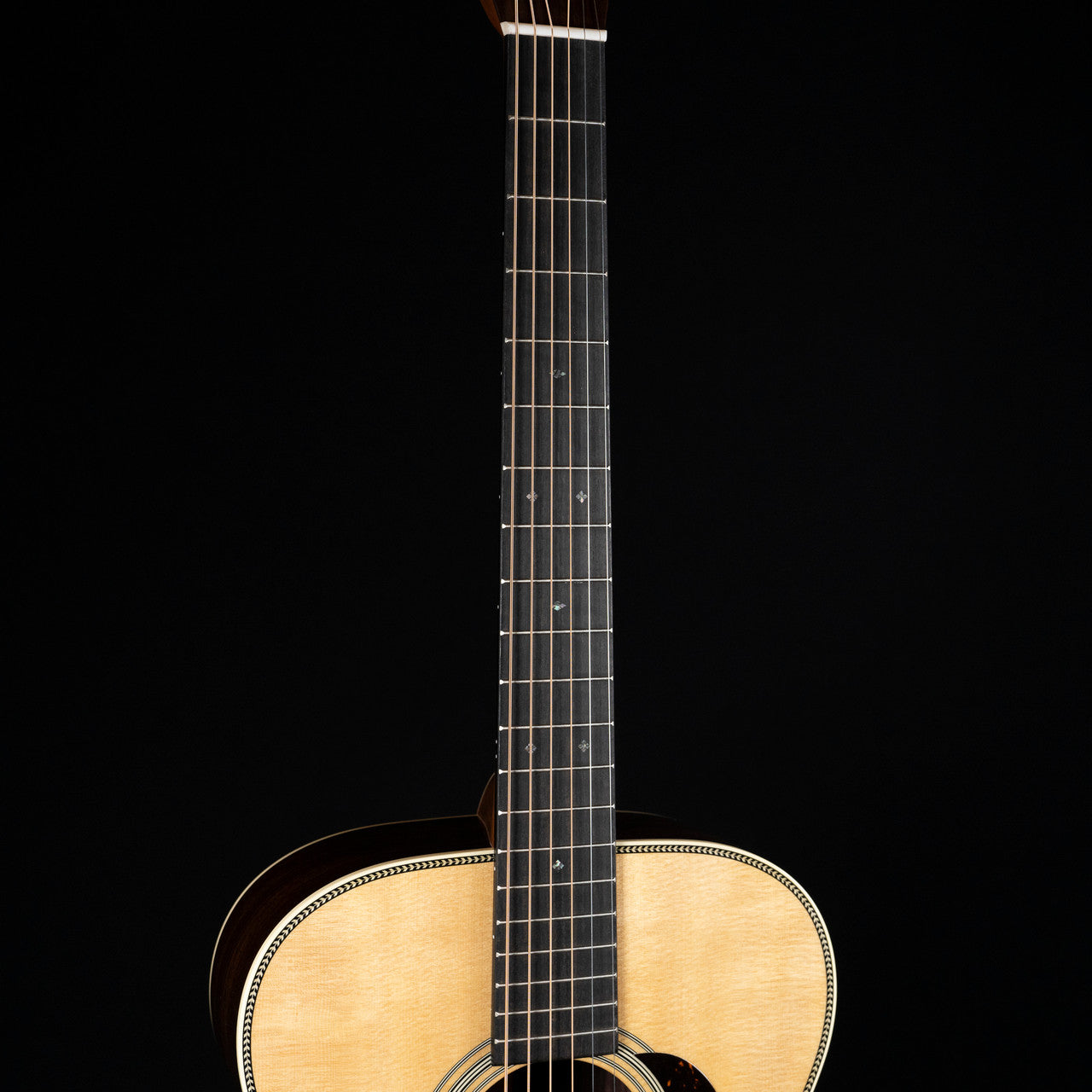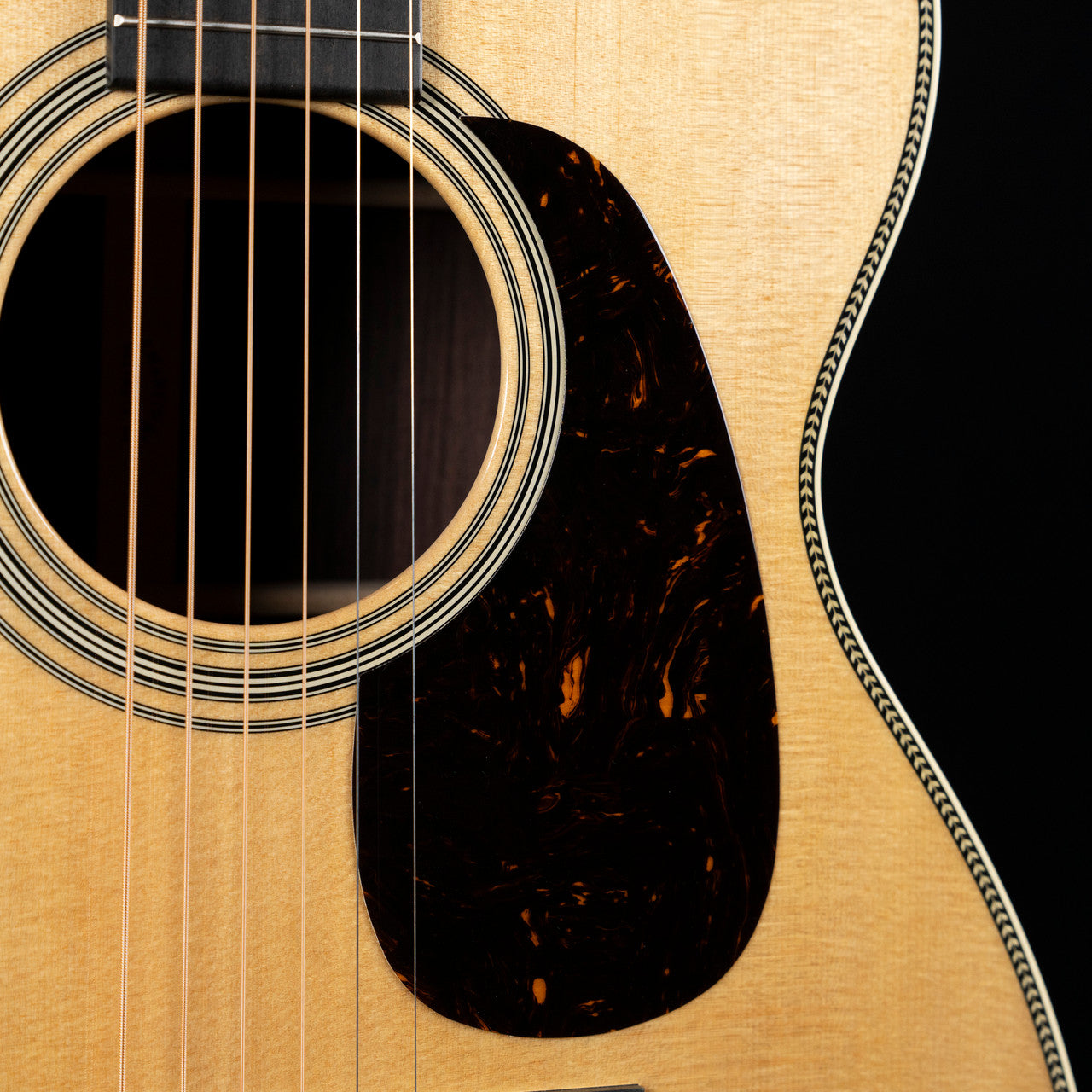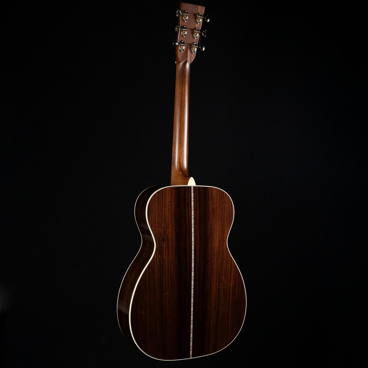 The Martin 00-28 is a trusted choice for players who value rich, resonant tone and effortless playability. Its smaller, comfortable Grand Concert body size delivers a soft yet expressive voice, with clear trebles complemented by warm bass, making it ideal for fingerstyle, intimate strumming, and everything in between. Handcrafted with a solid spruce top and solid East Indian rosewood back and sides, the 00-28 offers deep bass, rich overtones, and exceptional resonance, balanced beautifully for any playing style. The satin neck with a Golden Era (GE) Modified Low Oval profile, high-performance taper, and 24.9" scale length ensures unmatched playability. Elegant touches like bold herringbone top inlay, antique white binding, an ebony bridge with bone pins, and an ebony fingerboard with abalone diamond and square inlays complete its timeless design, making the 00-28 a guitar you can trust to unleash the artist within.