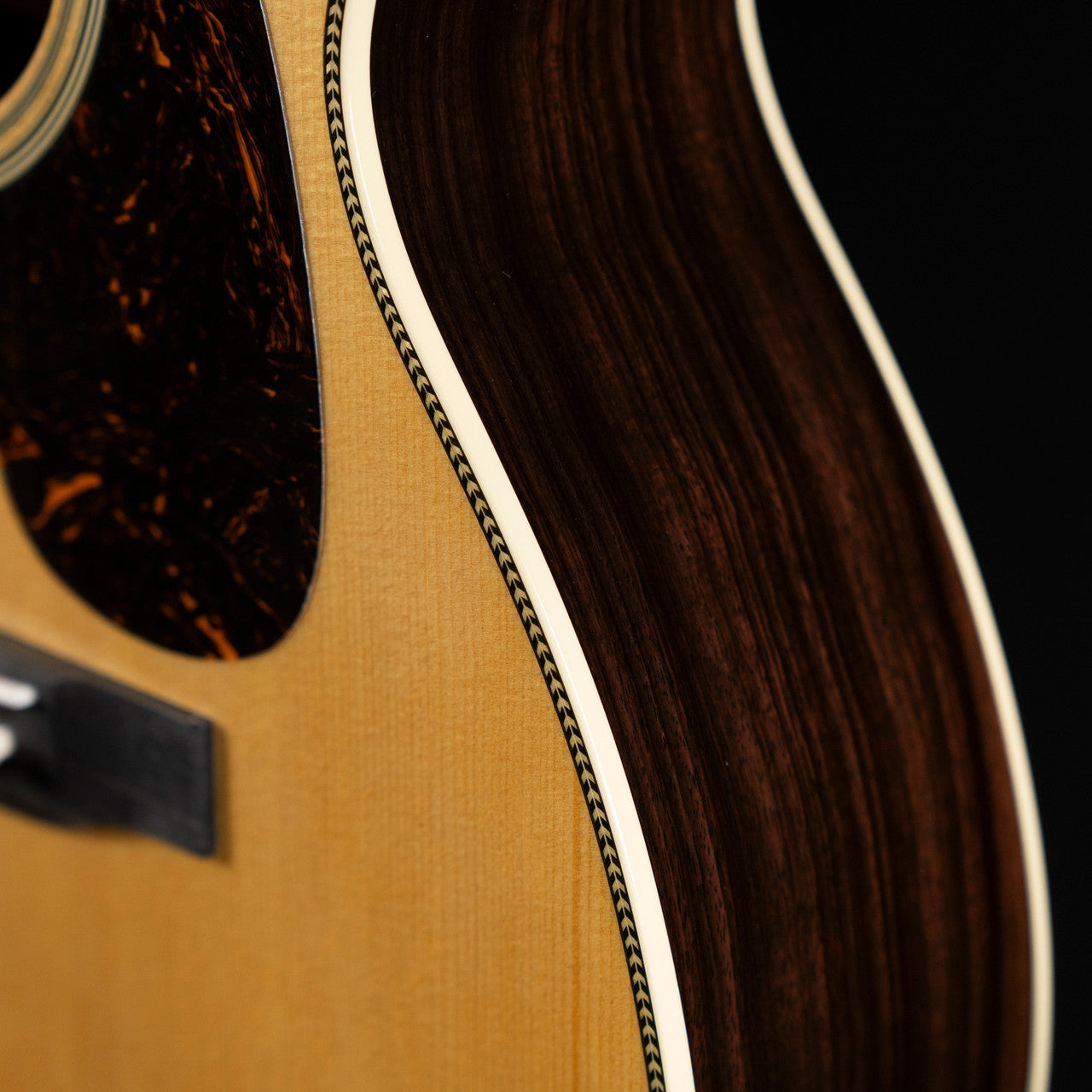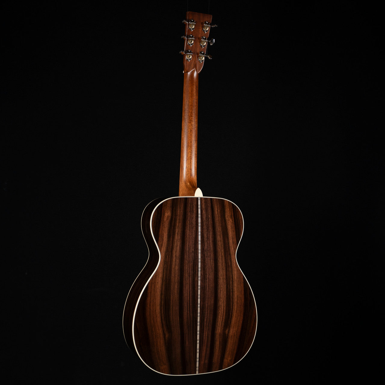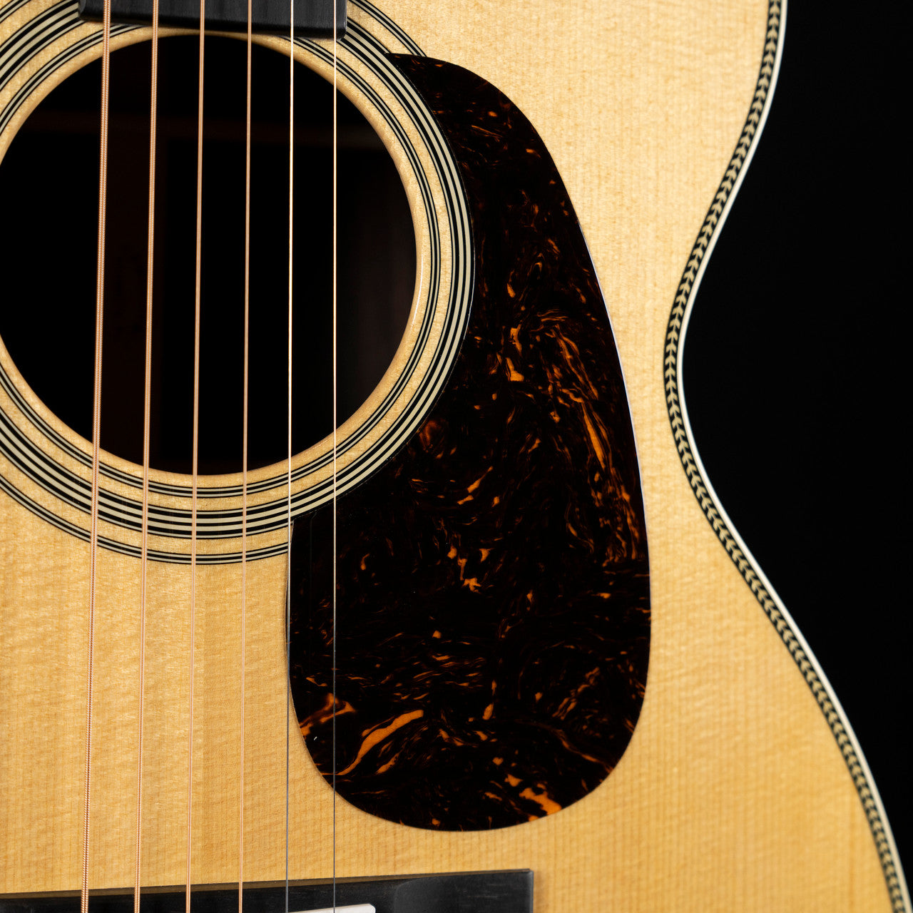 The Martin 00-28 is a trusted choice for players who value rich, resonant tone and effortless playability. Its smaller, comfortable Grand Concert body size delivers a soft yet expressive voice, with clear trebles complemented by warm bass, making it ideal for fingerstyle, intimate strumming, and everything in between. Handcrafted with a solid spruce top and solid East Indian rosewood back and sides, the 00-28 offers deep bass, rich overtones, and exceptional resonance, balanced beautifully for any playing style. The satin neck with a Golden Era (GE) Modified Low Oval profile, high-performance taper, and 24.9" scale length ensures unmatched playability. Elegant touches like bold herringbone top inlay, antique white binding, an ebony bridge with bone pins, and an ebony fingerboard with abalone diamond and square inlays complete its timeless design, making the 00-28 a guitar you can trust to unleash the artist within.