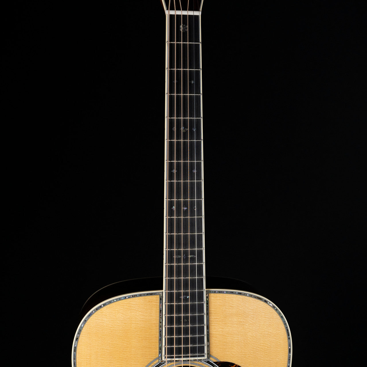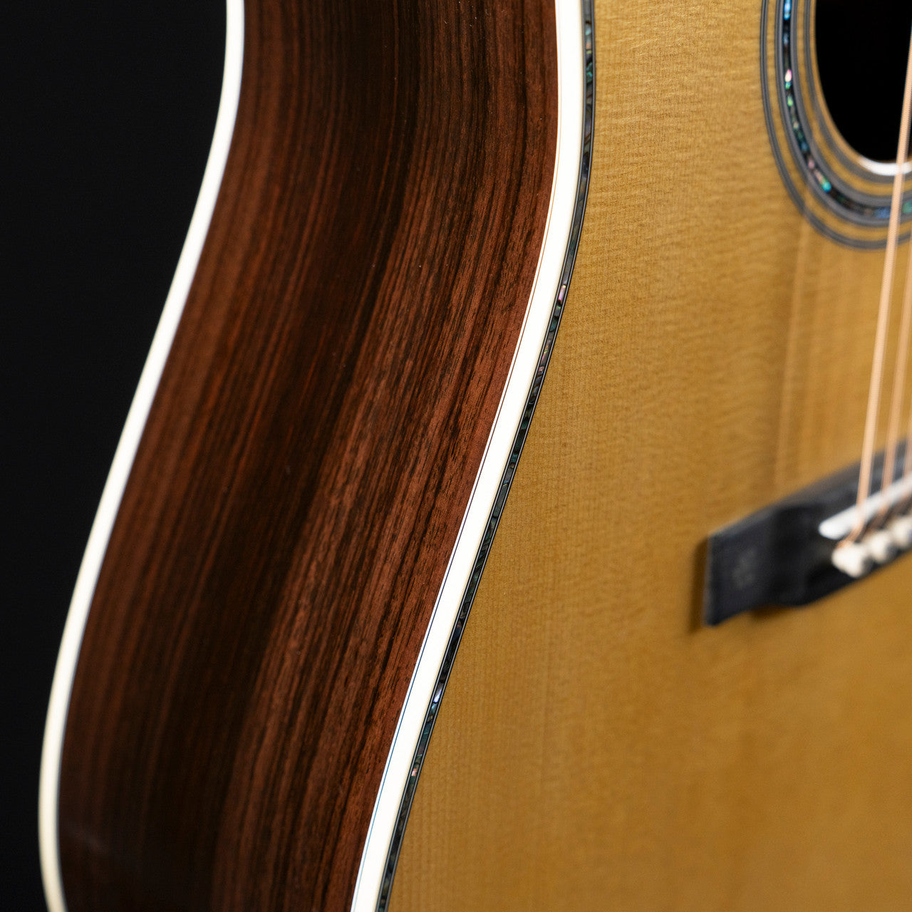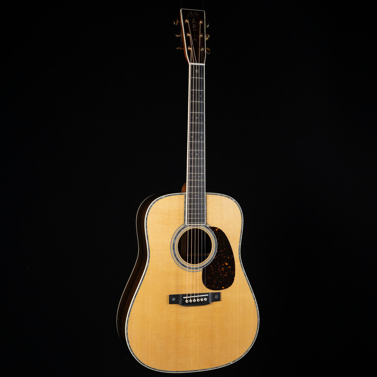 With back and sides of premium East Indian rosewood and a spruce top, this instrument is highly appointed with pearl inlay and enhanced with vintage appointments, such as antique white binding and open gear tuners. Massive bass response balanced with articulate highs and a high-performance neck makes the D-42 a beautifully appointed tonal masterpiece that makes playing for hours an easy task.