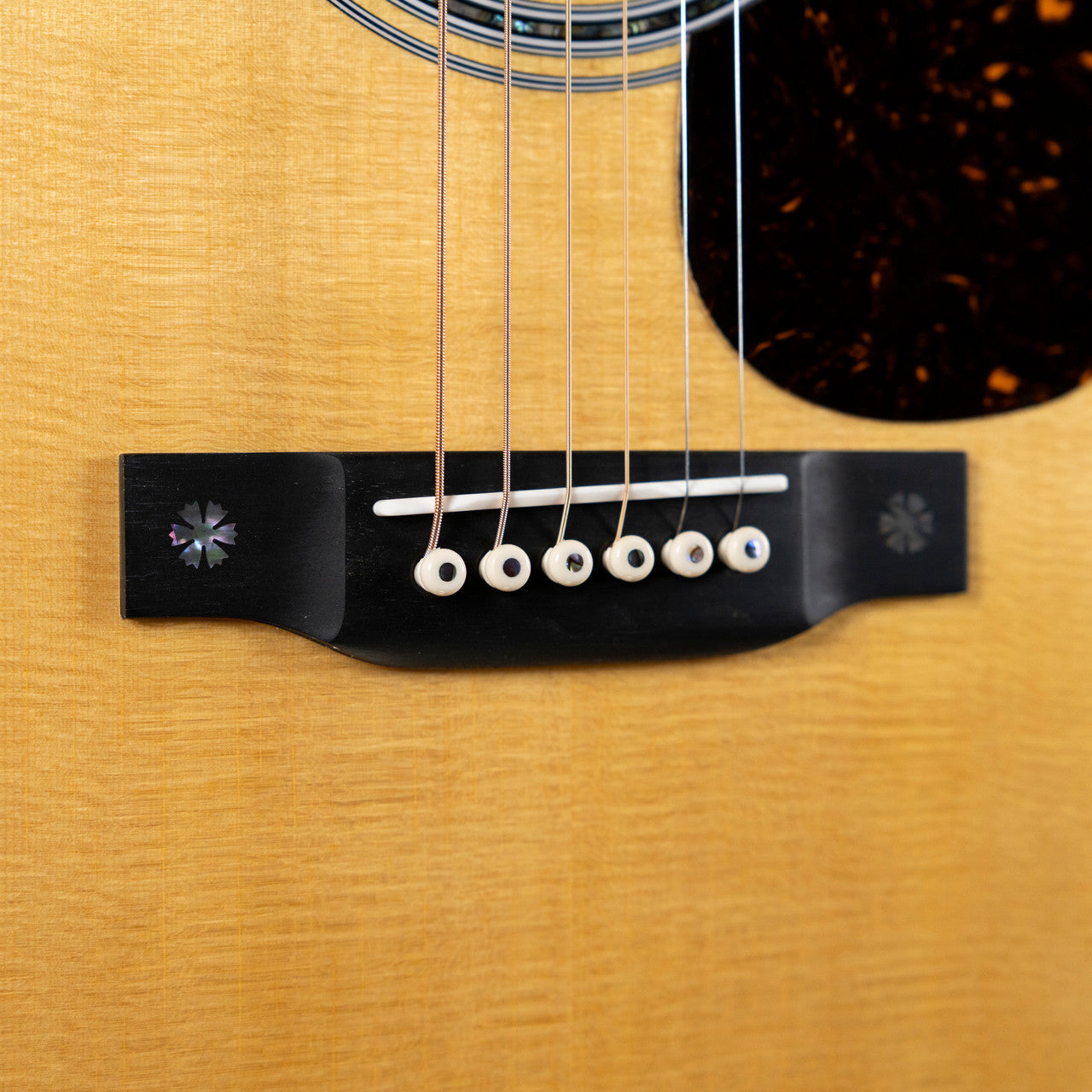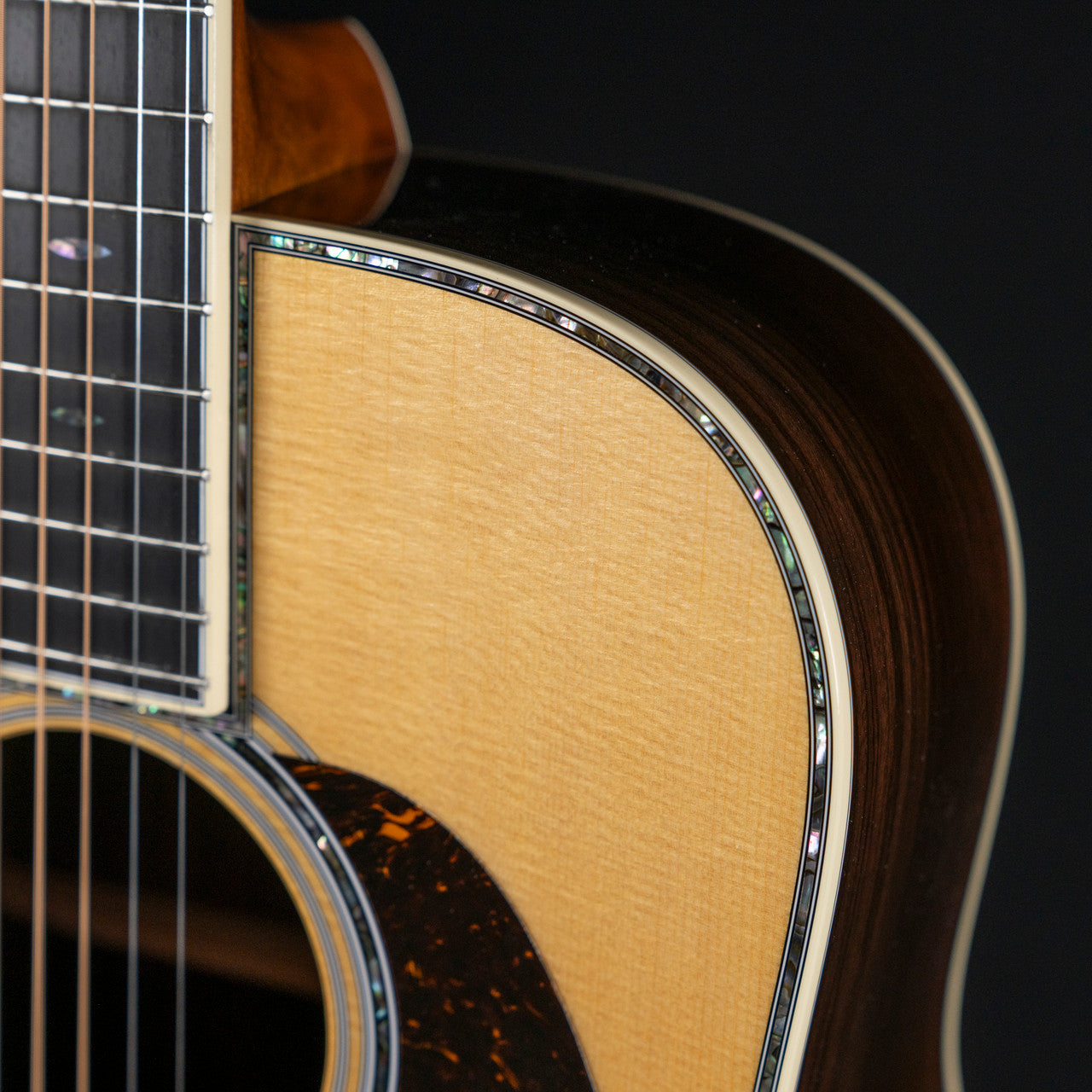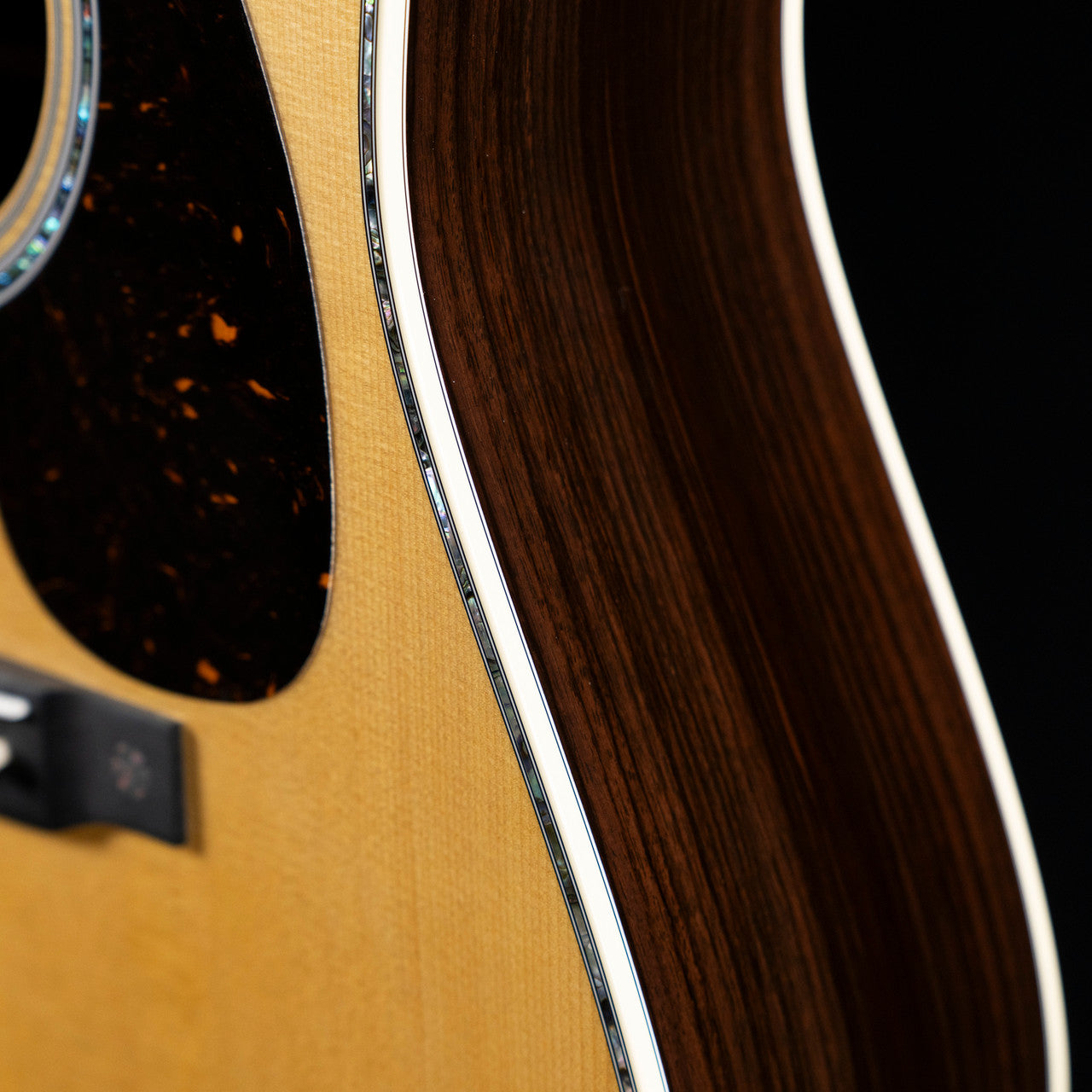 With back and sides of premium East Indian rosewood and a spruce top, this instrument is highly appointed with pearl inlay and enhanced with vintage appointments, such as antique white binding and open gear tuners. Massive bass response balanced with articulate highs and a high-performance neck makes the D-42 a beautifully appointed tonal masterpiece that makes playing for hours an easy task.