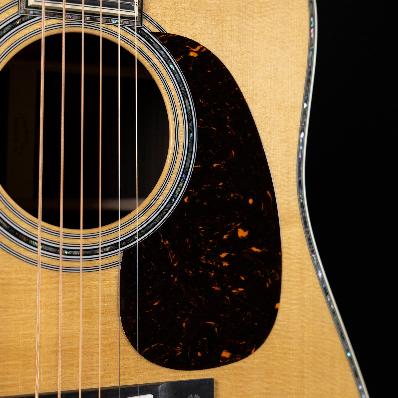 Here we have an absolutely stunning Martin D-42 Acoustic Guitar. Constructed with a Sitka Spruce top and premium East Indian Rosewood back and sides. The D-42 offers an incredible range of beautiful highs and deep bellowing lows. This guitar is a true display of the masterfully built acoustic guitars coming from the Martin workshop. Built with a beautiful pearl inlay around the body, the neck joint, and the sound-hole. Also including the block inlay Martin logo on the headstock and a set of silky-smooth gold open gear tuning machines. This guitar makes an incredible appearance for itself and sounds amazing. This is one of the most thrilling guitars we have received from Martin and are very pleased to have it here in our shop. Please reach out with any questions you may have!