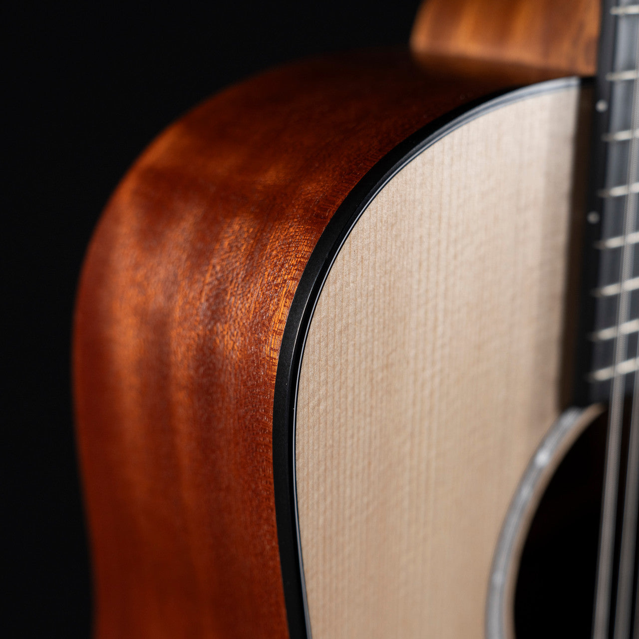 The Dreadnought Junior is designed for players looking for big Dreadnought sound in a slightly smaller body. The newly updated DJr-10E features satin finished sapele back and sides in a rich cherry hue, an option of satin finished Sitka spruce or Sapele top, and a hand-rubbed neck with a high-performance taper. This model also sports a thinner 000 body depth with softer back edges to provide maximum comfort while playing. Every Junior includes a soft gig bag for easy transport.
