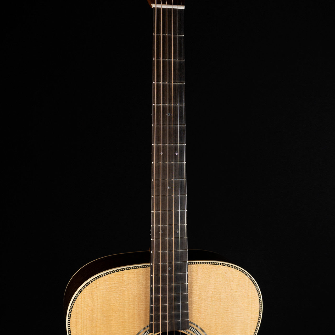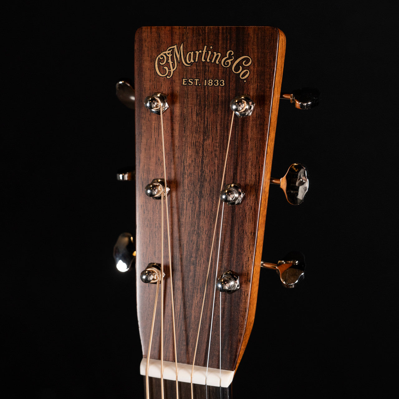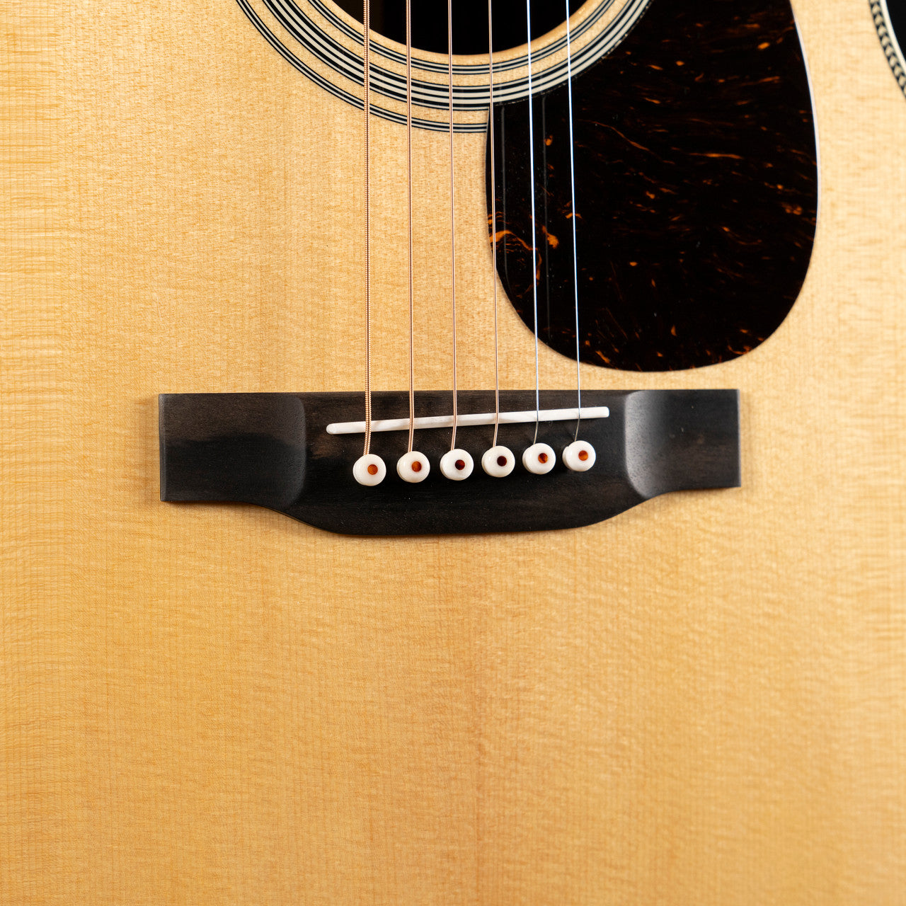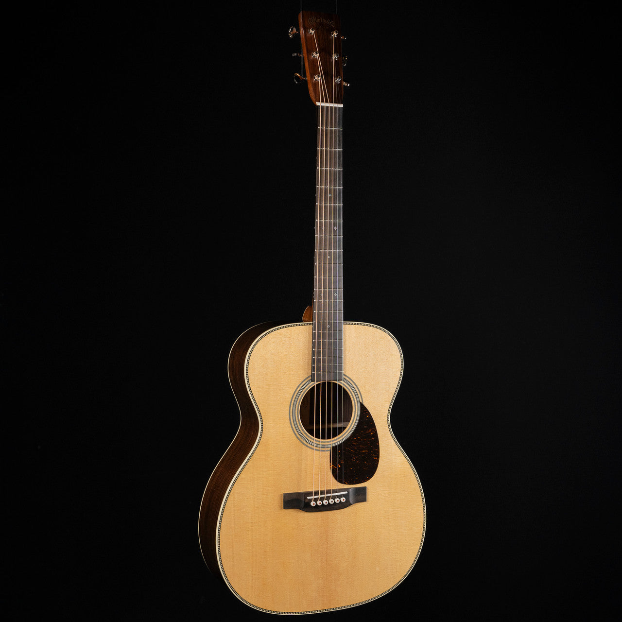 The Martin OM-28 is one of the most iconic models in Martin’s lineup, trusted by generations of players for its balanced tone, timeless style, and unmatched versatility. Its Auditorium body size delivers resonance across all six strings, with deep bass, rich overtones, and clear trebles that suit any playing style. Built with a solid spruce top and solid East Indian rosewood back and sides, the OM-28 features a longer 25.4" scale length, offering increased string tension, creating slightly brighter tones and enhanced projection and sustain. The satin neck with a Golden Era (GE) Modified Low Oval profile and high-performance taper ensures smooth playability. Complete with bold herringbone top inlay, antique white binding, and an ebony bridge with bone pins, the OM-28 is a timeless classic for today’s player. Available in a variety of striking gloss options, it’s a guitar you can trust to unleash the artist within.