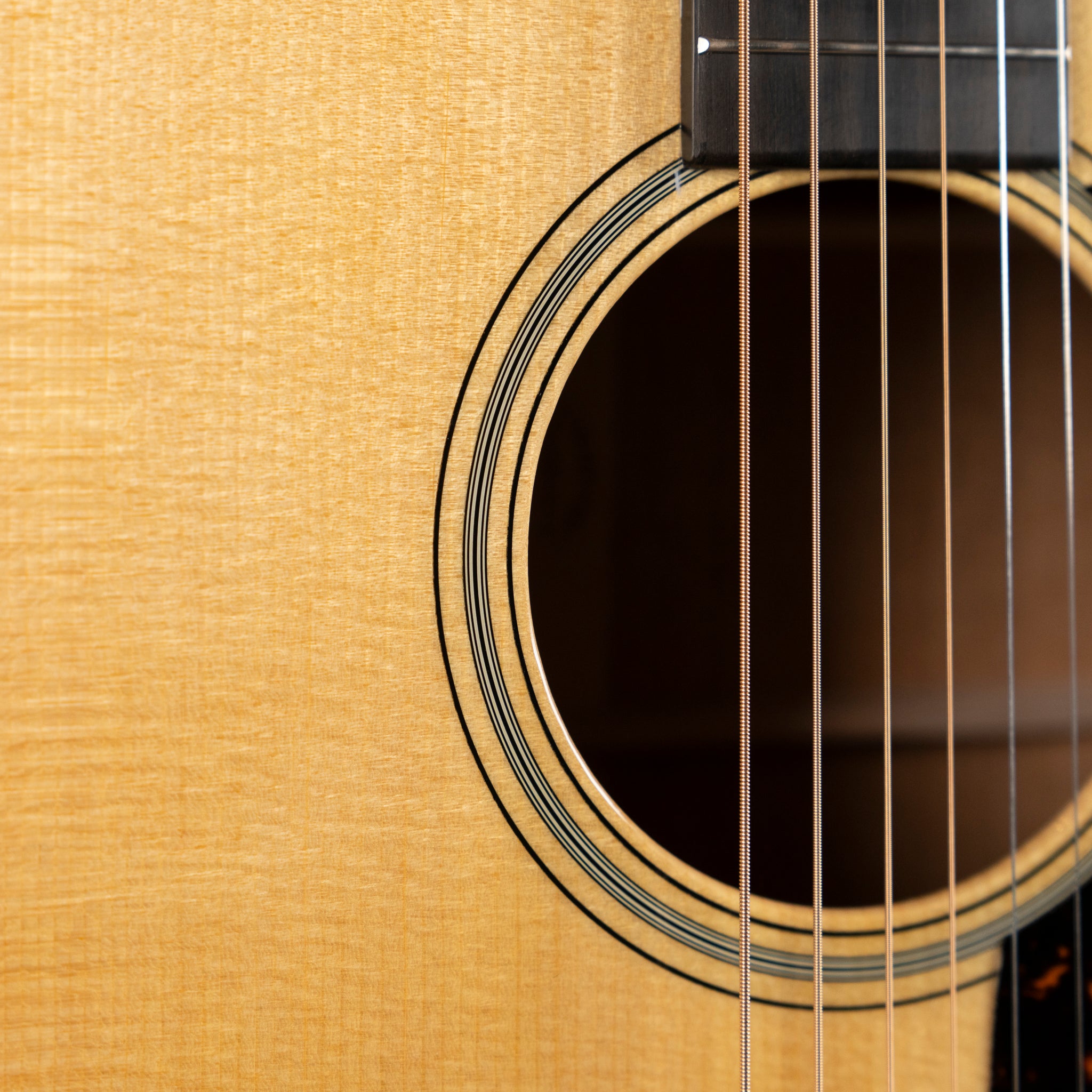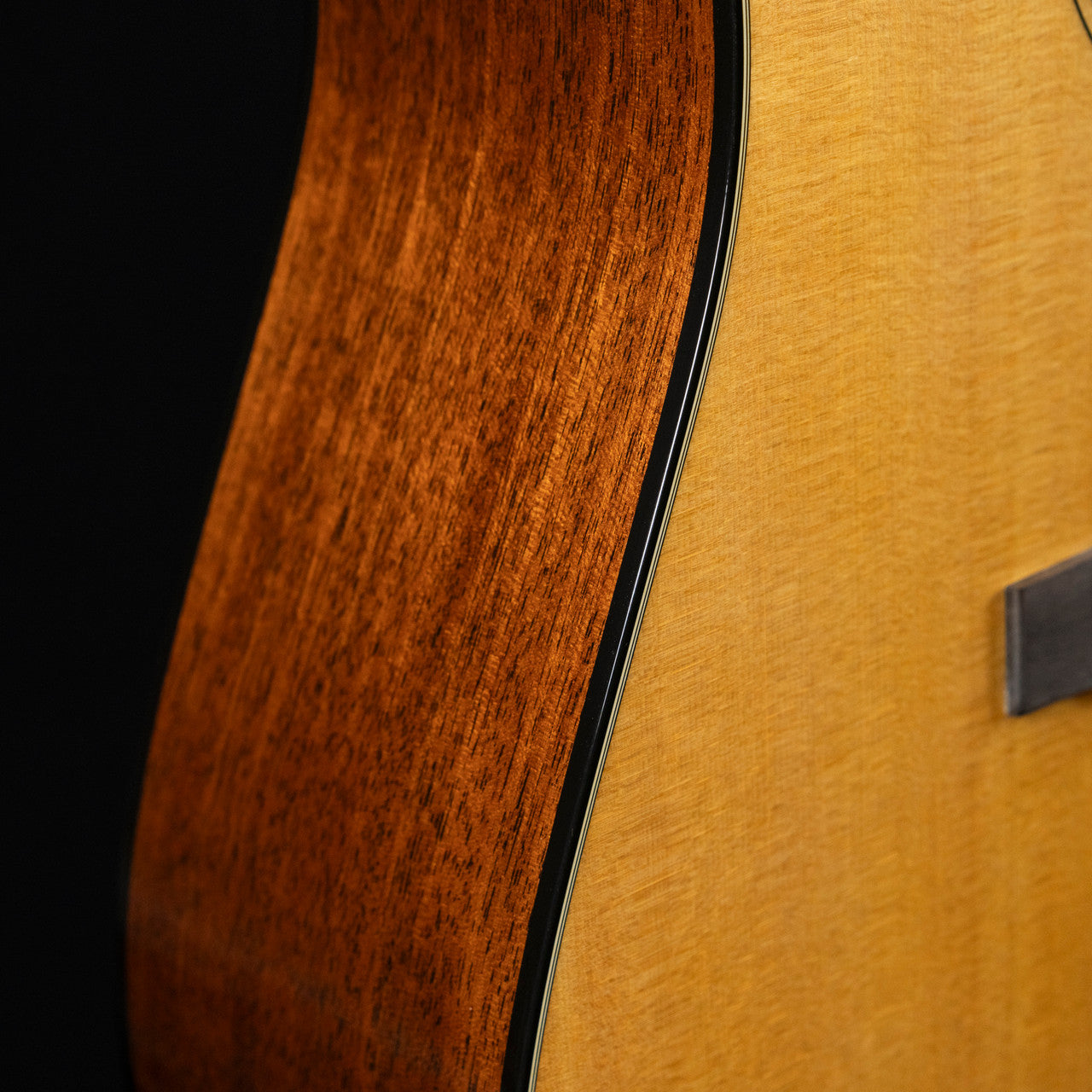 The updated standard series model now features Golden Era Sitka Spruce bracing for a vintage, breathy tone with enhanced sustain, a Golden Era modern belly bridge with smoother and more comfortable corners, thin comfort beveled fingerboards, bone bridge pins, a long diamond neck transition, a cut angle on the nut, and a vintage style heel. A lot of these key features have only been available at custom and vintage style models, but not anymore!