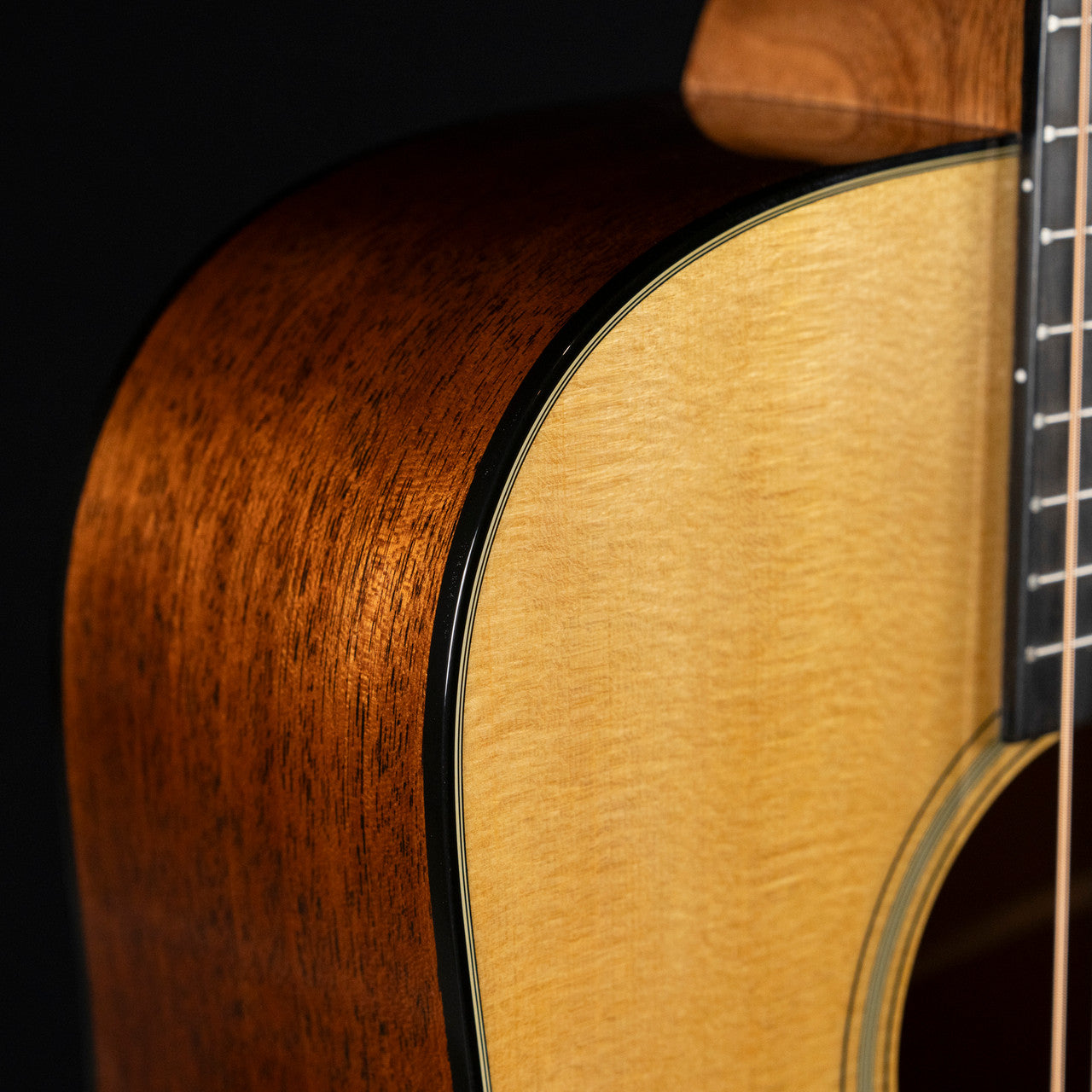 The Martin D-18 is one of the most iconic guitars in Martin’s lineup, trusted by legends of music and players like you for nearly a century. Known as a tried-and-true workhorse, its Dreadnought size delivers the bold, projective tone and strong bass that have shaped countless performances and recordings. Handcrafted with a solid spruce top and solid mahogany back and sides, the D-18 offers a full and balanced voice with bright trebles, a punchy midrange, and exceptional clarity in an iconic, no-frills design that has always delivered. The satin neck with a Golden Era (GE) Modified Low Oval profile, high-performance taper, and 25.4" scale length ensures unmatched comfort and playability. Elegant ebony details, including the bridge, bridge pins, and fingerboard with abalone dot inlays, complement its timeless style. Available in a variety of gloss and satin options, the D-18 is a guitar you can trust to unleash the artist within.