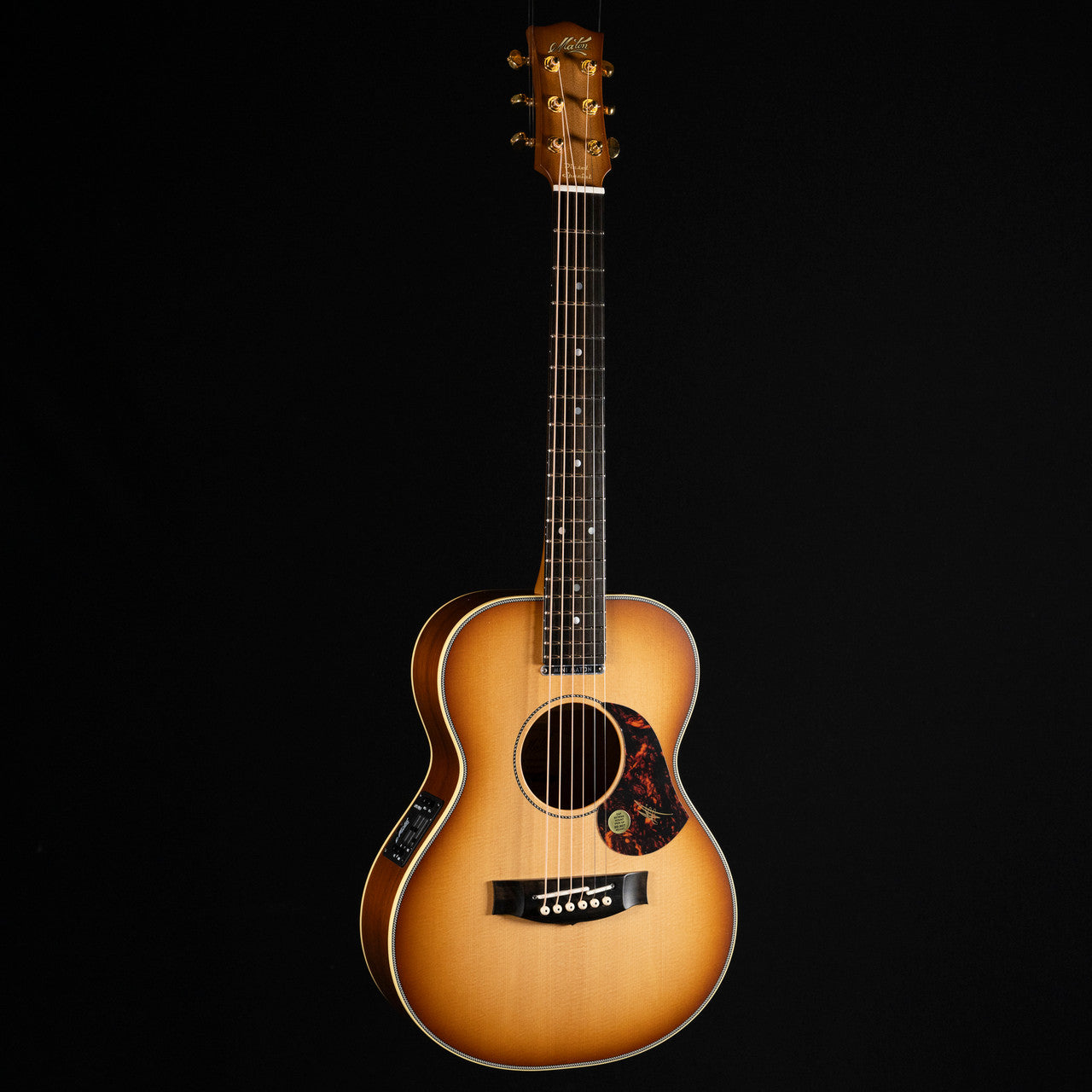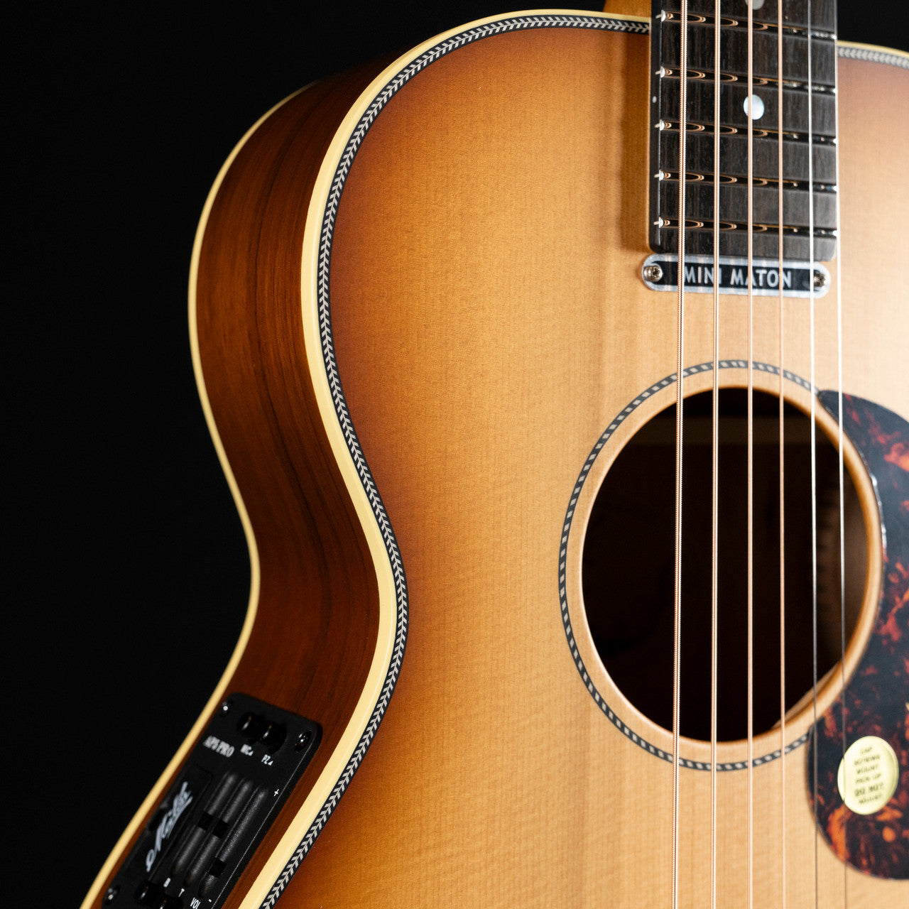 The Mini Maton Diesel Model is a small bodied guitar with a very big voice. Though it is a lot smaller than a standard dreadnought, this guitar packs a punch well above its weight.. This models features an "AA Select" Grade Solid Sitka Spruce top, solid blackwood back and sides, now with the AP5 PRO pickup system, gold grover machine heads, and a Vintage Amber Stain.