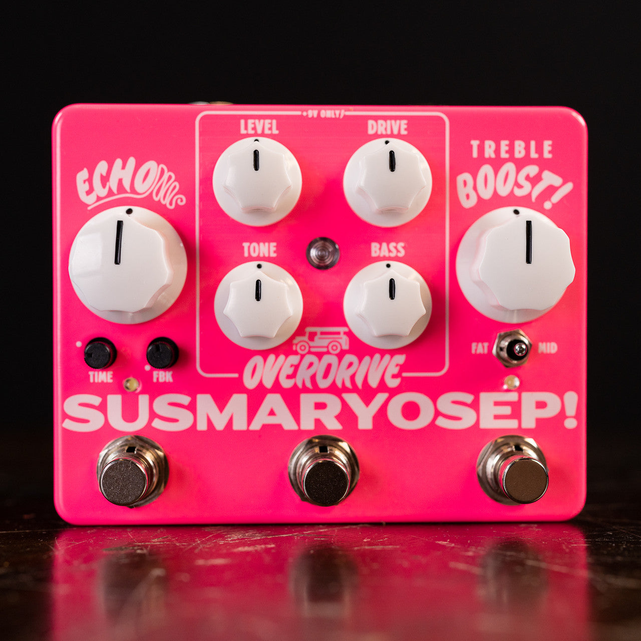 In early 2019 R.J. and Zach began tossing ideas around to create a unique drive/echo pedals and that evolved into the SusMaryOsep! What does SusMaryOsep mean? Well it’s a common Filipino slang word that mothers yell at their children. But what is the pedal you ask? That’s a little more complicated! The V2 ditches the sliders for knobs and gives players a Silicon Treble booster, and updated Herculean circuit and the same echo as before just with controls on the face. The switching has been refined for less popping and we’ve tried our hardest to spare no expense in creating exactly what R.J. wanted.