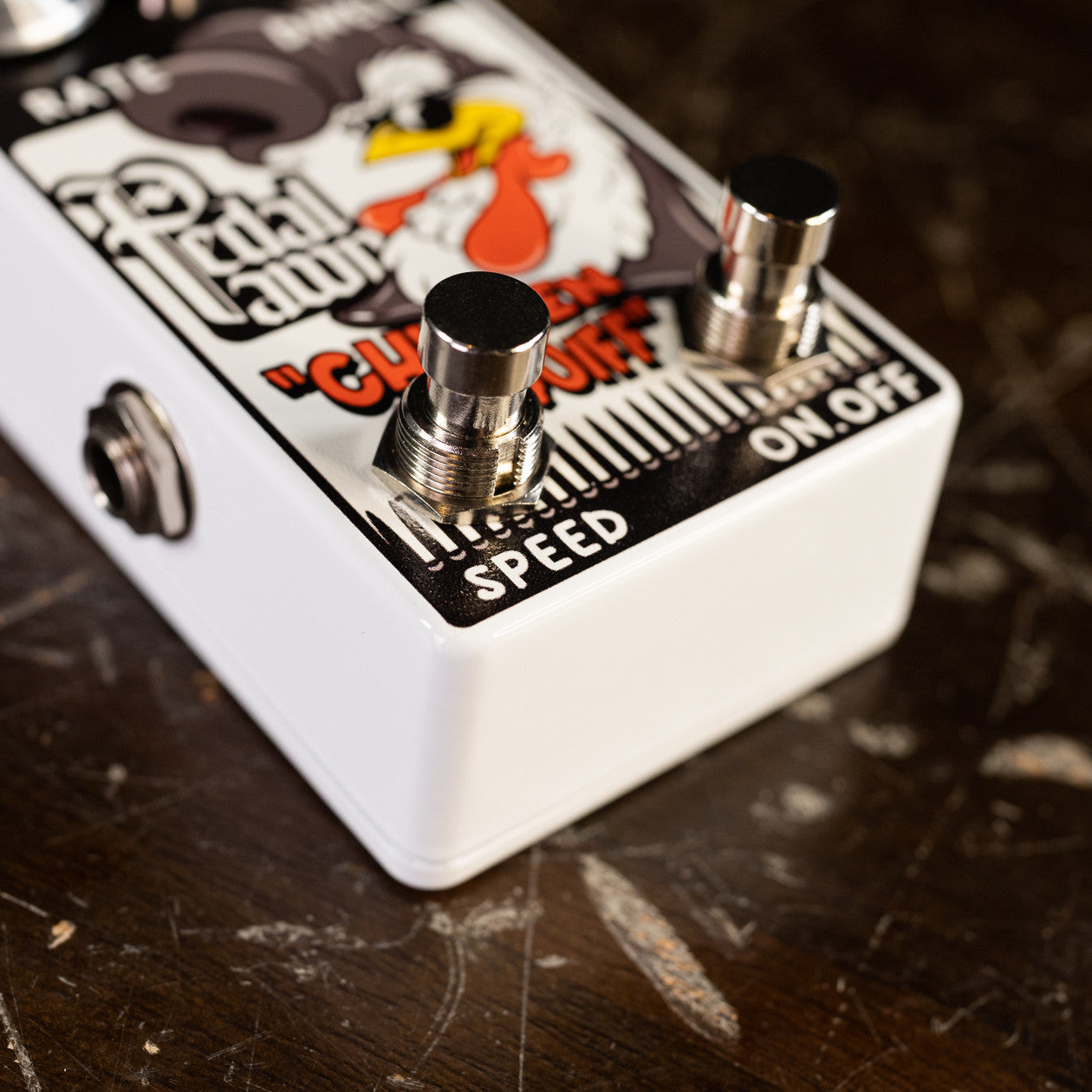 We’ve reverse engineered that lush tremolo magic & are now proud to present the - Pedal Pawn ® Chicken Quiff ™ ? Featuring the coolest looking chicken to ever exist, this dual speed design can accelerate you from a slow soulful pulse, to a fast 60’s shimmer - all at the tap of a button!