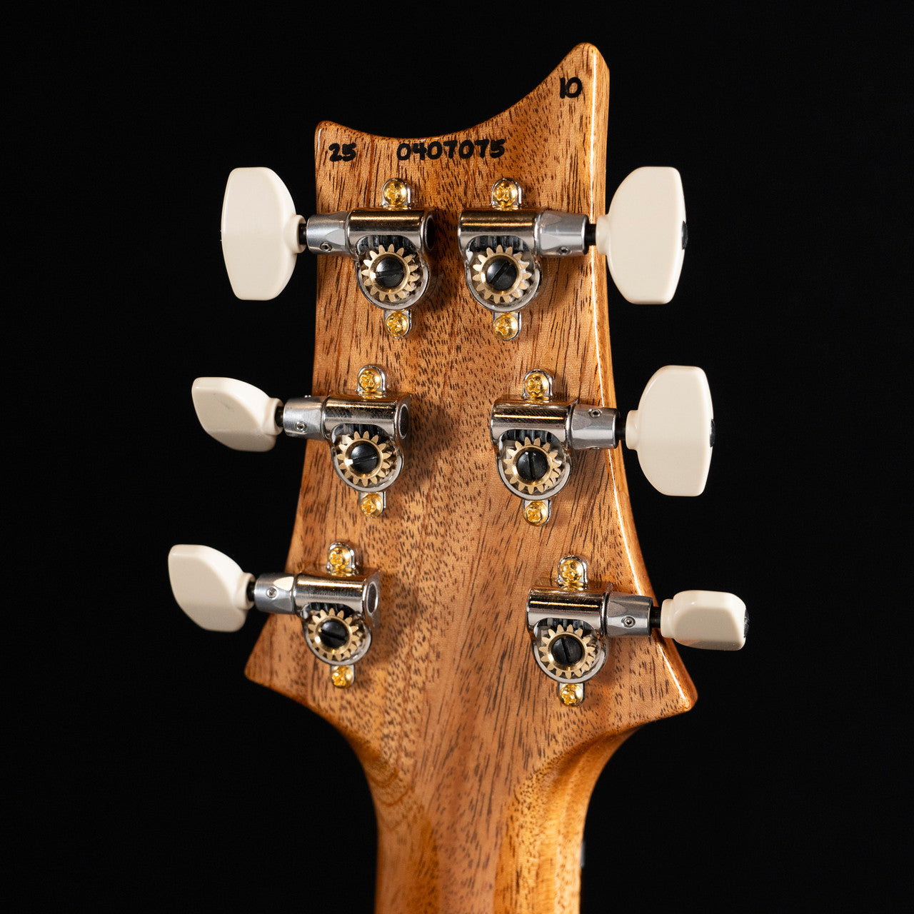 The Custom 24 10-Top is the quintessential PRS guitar, the iconic instrument that started it all back in 1985. The Custom 24-08 keeps many of the foundational specs as the original Custom – maple top, mahogany back and neck, 24 frets, 25” scale length, the PRS patented Gen III tremolo, and Phase III tuners with wing buttons – but adds a new level of versatility with its TCI pickups and EQ Mini-toggle switches.