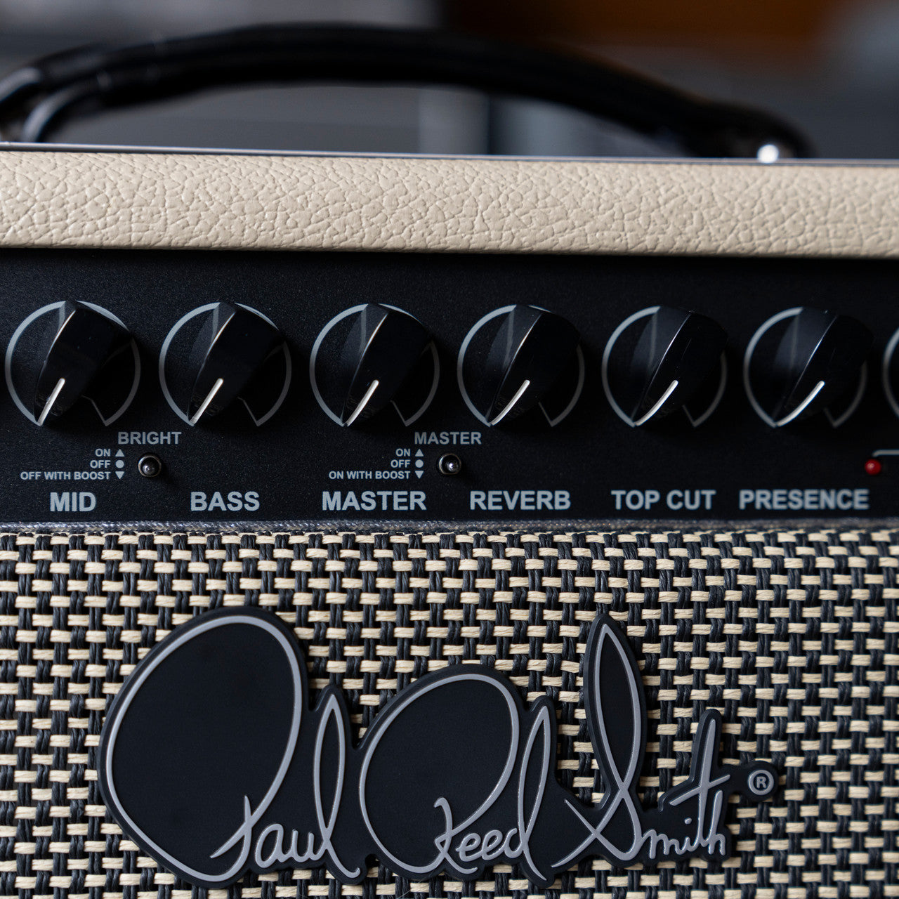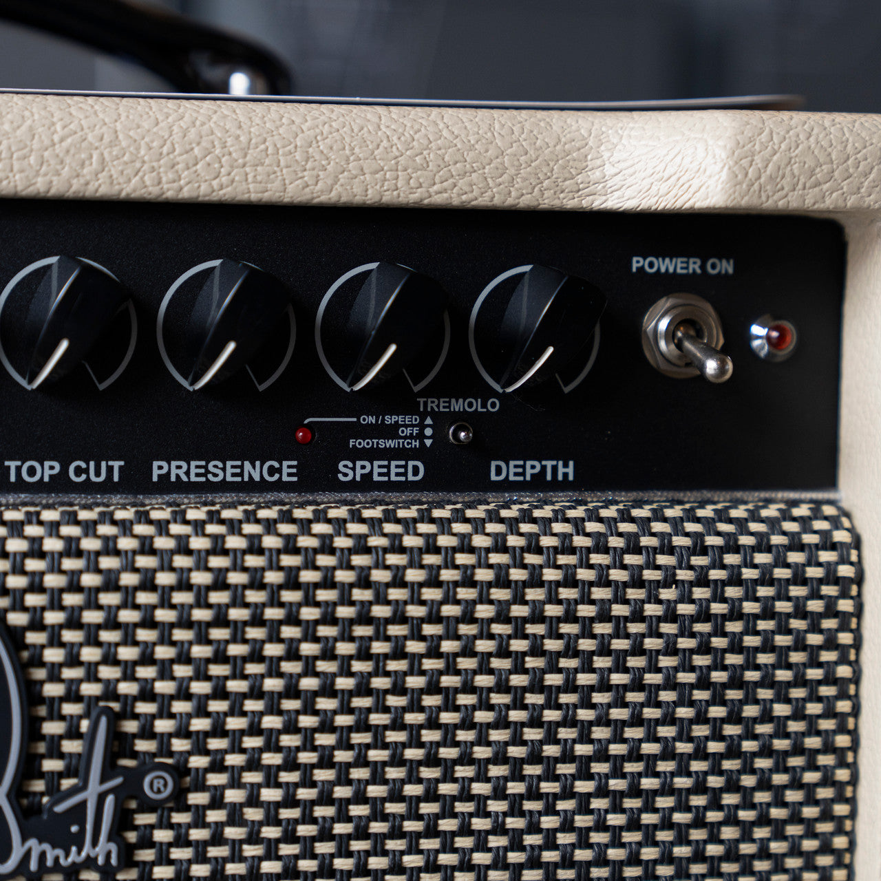 - Front panel controls: Tremolo Switch, Tremolo Depth, Tremolo Speed, Presence, Top Cut, Reverb, Master Switch, Master, Bright Switch, Bass, Mid, Treble, Boost Switch, Volume