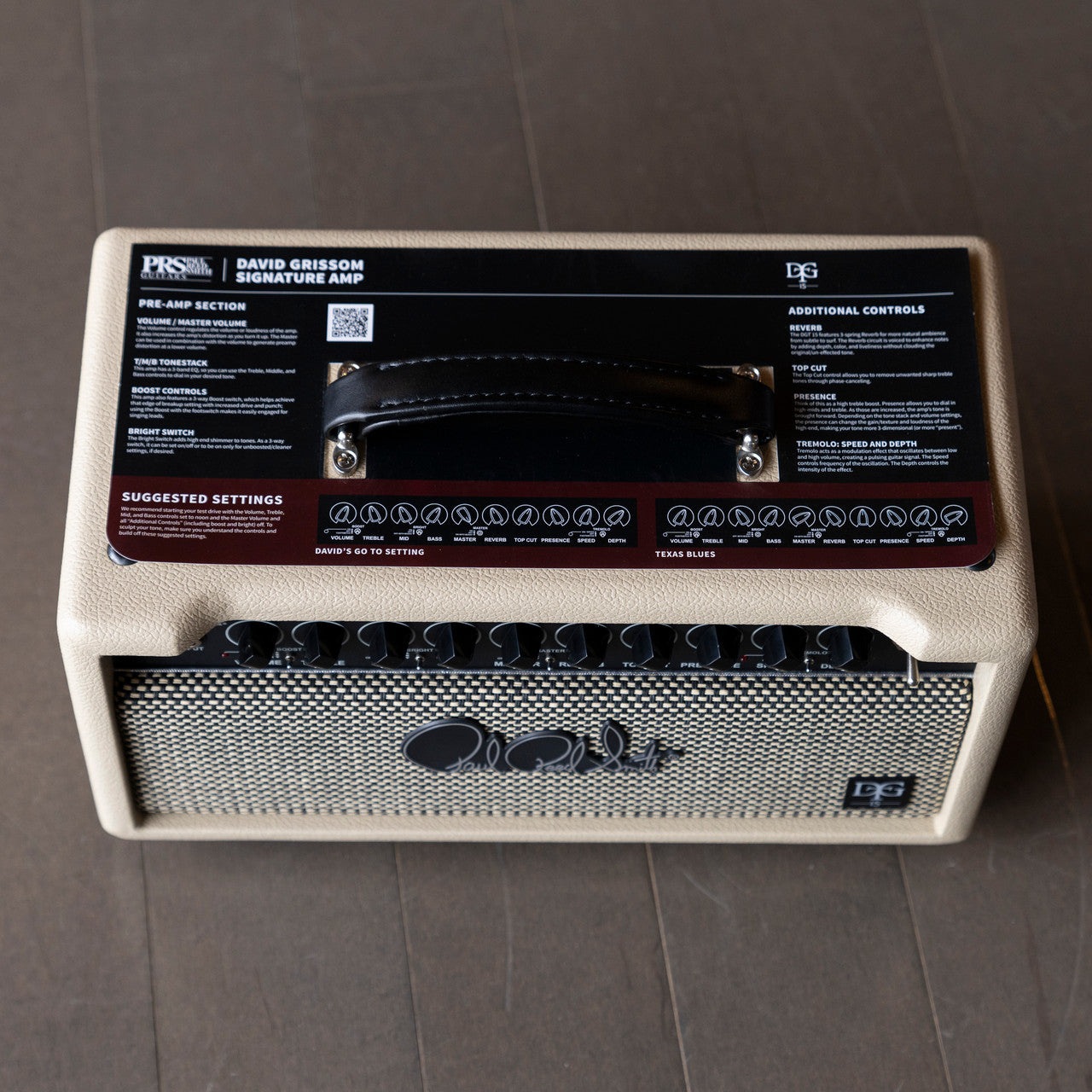 “Watching David in awe over the years create beautiful tones with the DGT guitar and various settings on his DG Custom 30 amp inspired me to design features into his new DGT 15 amp to help you get your favorite tones with a tap of the footswitch. Along with the lush reverb and new tremolo circuit, this is one of our most feature-laden designs to date. Know that this amp comes to you with the most intense admiration and respect for Mr. Grissom and his music.” – Doug Sewell, PRS Amplifier Designer