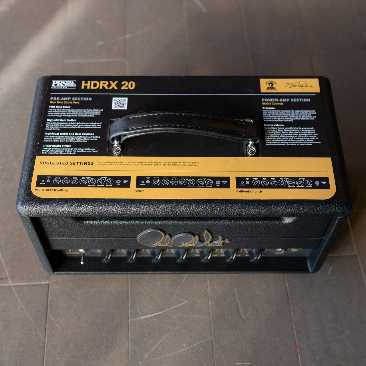 The PRS HDRX 20-20-Watt Head captures the flexibility, power, and balance of late 60’s British-inspired tone in a lower wattage package. The PRS HDRX 20 features a newly documented “Authentic Hendrix” Touring Circuit. This circuit is heavily inspired by one of Hendrix’s personal amps, purportedly used at Woodstock, which Paul Reed Smith and PRS Amp Designer Doug Sewell were able to study in 2018.