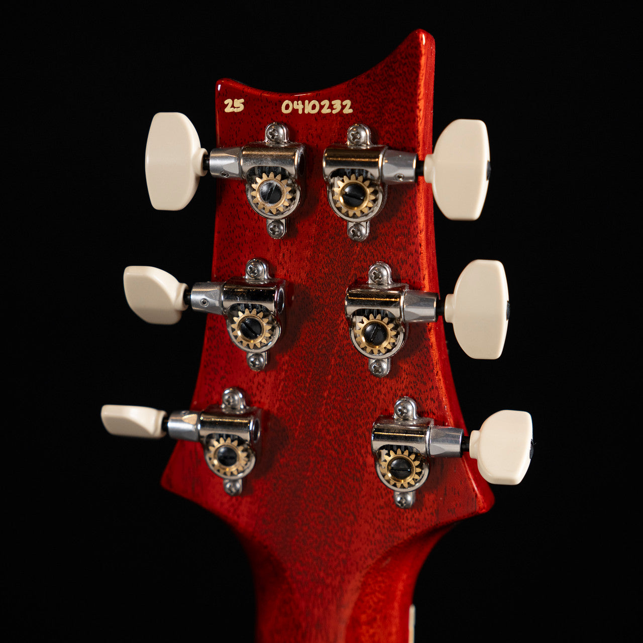 For 2024, PRS Guitars is updating the tuning machines on many of our Core guitars. While, aesthetically, our new Wing buttons are designed to echo the 12th fret bird wingspan design, they were first and foremost designed for tonal reasons all the way back in 1982. Because these buttons are lighter weight than their metal predecessors, they are subtracting less energy from the vibrating strings, thus helping the guitar ring longer and at a more musical note. The removal of the tuner’s locking feature on non-tremolo-equipped guitars further decreases their weight.