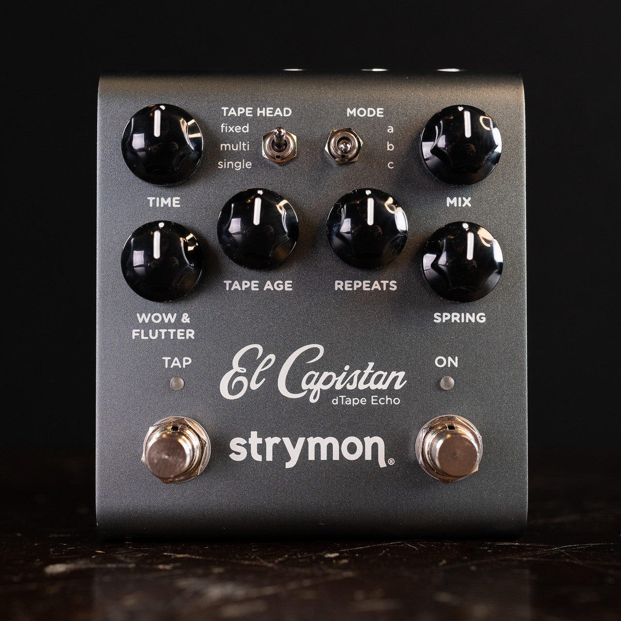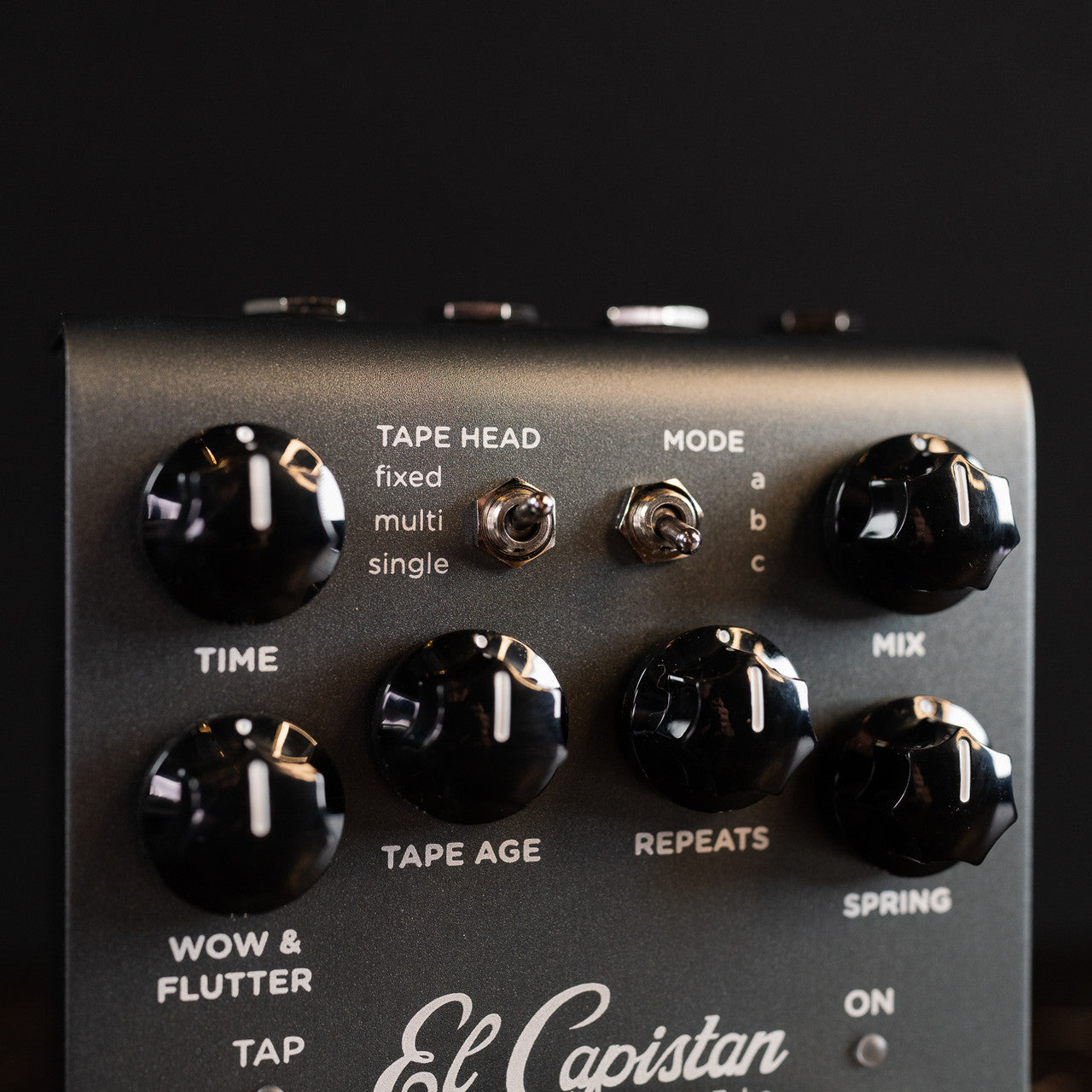 El Capistan provides three different tape machine types in one pedal, each with three unique modes and extensive control over tape quality, machine health and tone shaping. Go from the full-range sonic stability of a fresh-from-the-factory echo machine, to the heavily fluctuating sound of a road-worn unit in need of service. Enjoy the full bodied sound of fresh tape, or dial in the dark, gnarled and vibey qualities of worn out tape. Our meticulously handcrafted dTape™ technology and powerful ARM DSP give you a range of tape experiences that would be unattainable with a single traditional tape machine. Plus you get sound on sound looping, all without the headaches of tape machine maintenance and repair.