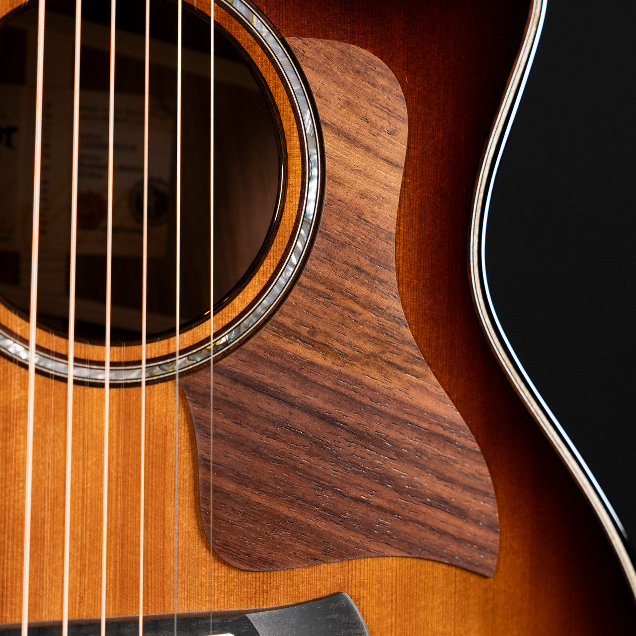 Case & Setup: Includes deluxe Taylor hardshell brown case; factory setup in E‑standard tuning