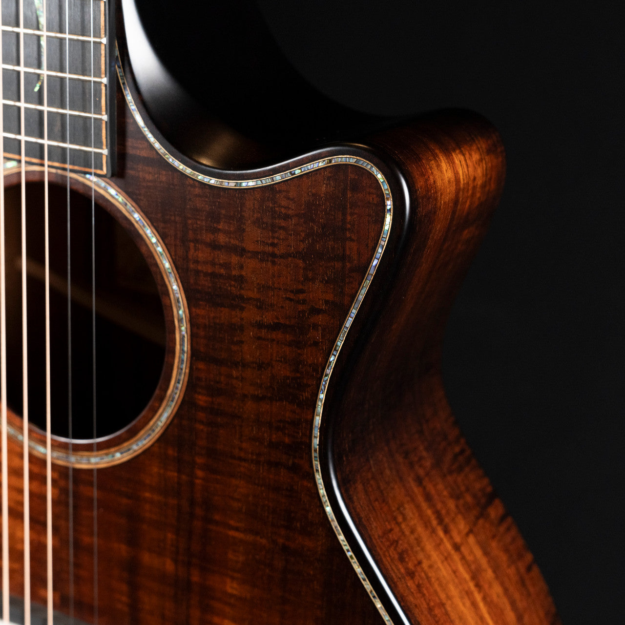 Here we have one of the most beautiful acoustic guitars money can buy, the Taylor Builders edition K24ce. This guitar is a sheer display of the masterclass craftsmanship and quality coming from the Taylor workshop. This Grand Auditorium is constructed with some of the most incredible Hawaiian Koa we have ever seen. The beauty of the Koa top, back and sides is an instant shock and a massive source of inspiration. Producing some of the smoothest lows and sweetest highs pairing perfectly in harmony with each other. The beveled cutaway allows for easy access all the way up the fretboard and creates a comfortable place to rest your hand. The V-class bracing is a revolutionary design that creates a huge sonic boost and we have to mention the incredible Expression System 2 that allows for a wide variety of crystal clean tones. The fretboard inlay is a very unique "spring vine" that is guaranteed to peak interest of anyone nearby. Overall we could not be more excited with how this guitar turned out and don't anticipate it being here for very long. Please reach out to us with any questions you have about this one, we'd love to talk about it.