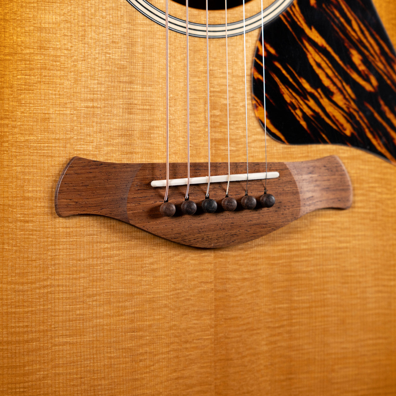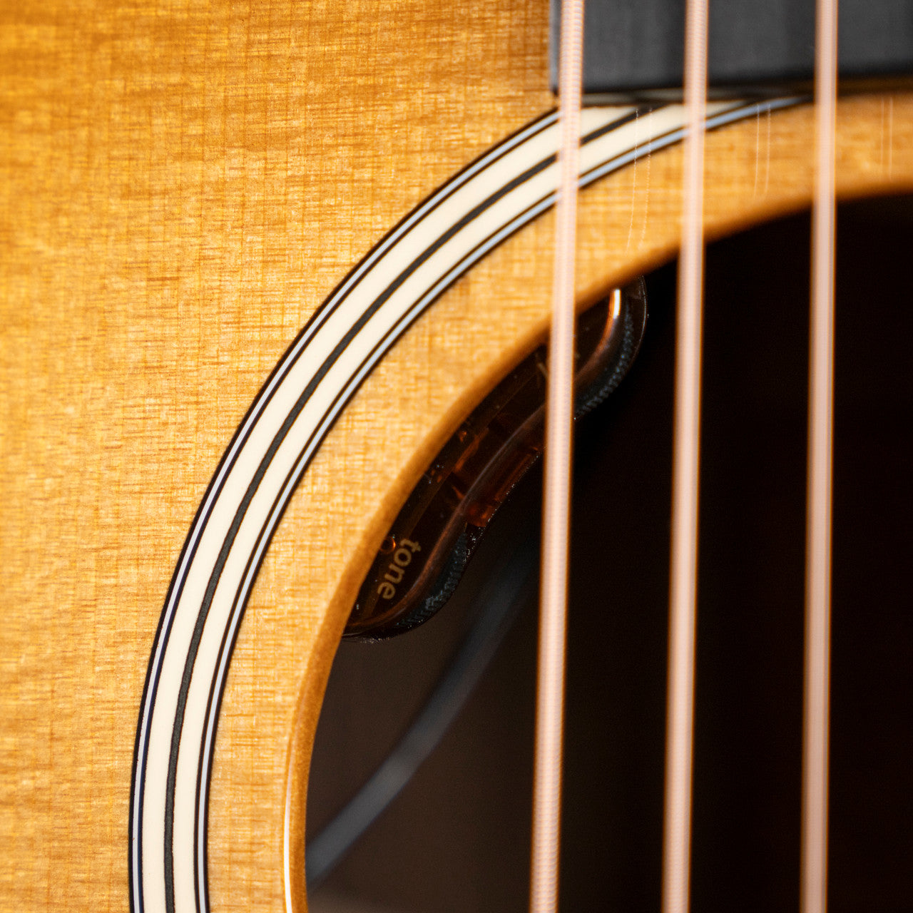 Our Gold Label guitars produce a warm, heritage sound unlike anything you've heard from Taylor before, and this modified Grand Pacific adds even more depth and variety to the collection. The Gold Label 717e SB boasts a deeper version of our round-shoulder dreadnought body shape, coaxing out an exceptionally warm, open voice with a rich bass-range response, clear power across the spectrum and treble notes with a round, smooth character. The classic tonewood pairing of Indian rosewood and Sitka spruce yields blooming overtones along with a dash of played-in sweetness thanks to our proprietary torrefaction process for the soundboard. Inside, a fanned variant of our V-Class bracing architecture bolsters the volume and sustain, while our patented Action Control Neck™ incorporates a long-tenon joint to enhance low-end resonance. The neck design also offers unmatched micro-adjustability and playing comfort—you can alter your action (string height) in seconds with a simple turn of a bolt through the soundhole without needing to remove the neck or detune the strings.