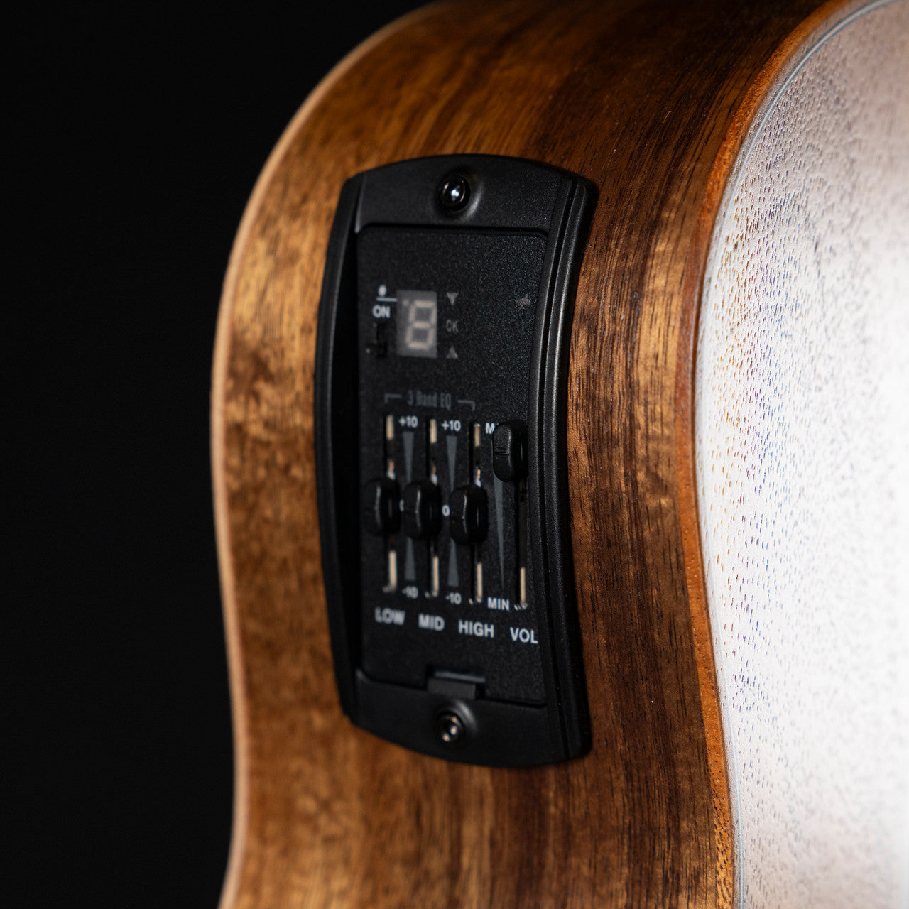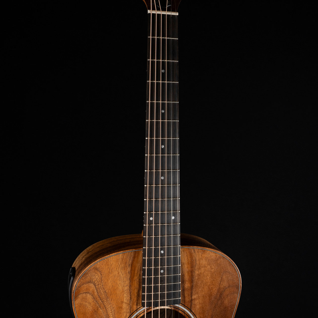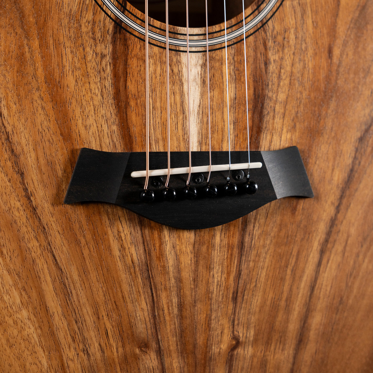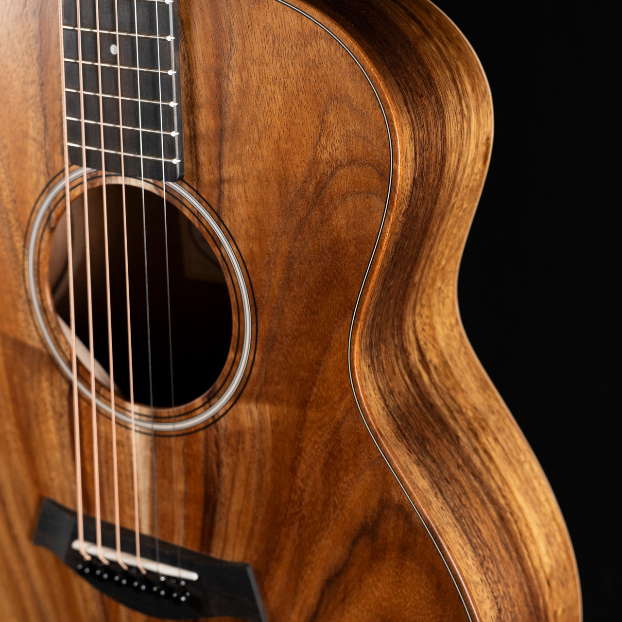 This alluring all-koa version of the GS Mini pairs a solid koa top with layered koa back and sides, serving up an inspiring blend of looks, feel and sound. The compact Mini’s scaled-down design delivers ultra-portability for players on the go and couch-friendly comfort for picking at home, while the rich, full voice belies its size. Our patented neck design guarantees signature Taylor playability, and the shorter 23.5-inch scale length makes forming a chords a breeze. Onboard ES-B electronics invite you to plug in whenever you're ready, and feature a convenient built-in digital chromatic tuner with an LED display for tuning and low battery indication.