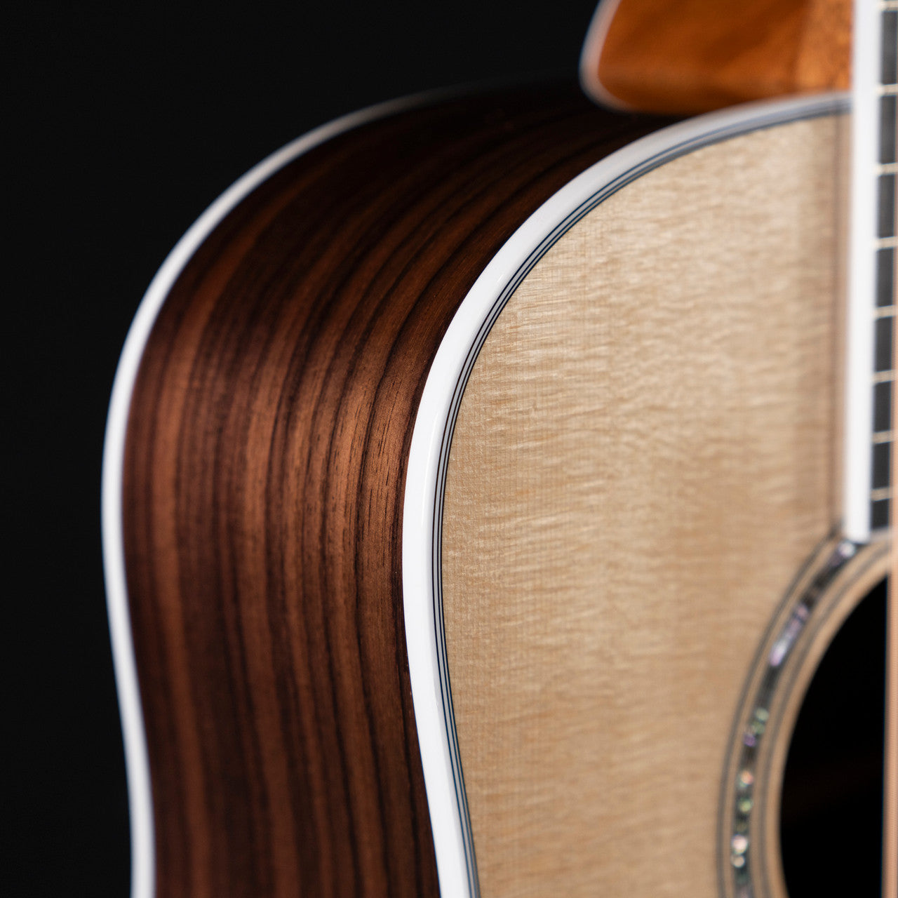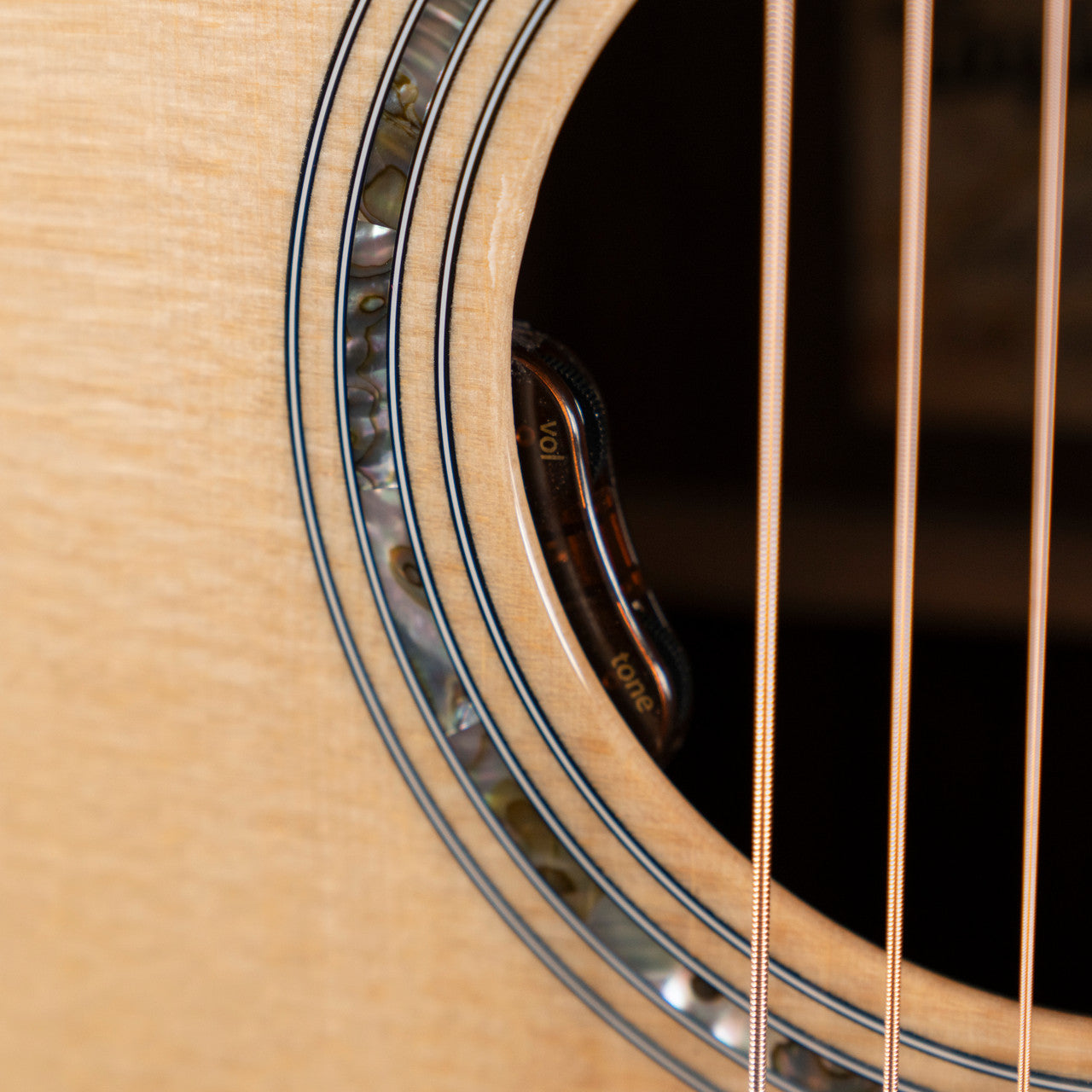 Honoring the innovations of Taylor designs dating back to 1975, the Taylor Legacy 810e Rosewood Acoustic Electric guitar offers the sound, look and feel of the original Dreadnought acoustic-electric guitar with updates to select features that enhance the overall performance and aesthetic. Crafted with Indian rosewood back and sides paired with a Sitka spruce top, this model pays tribute to Bob Taylor's ingenuity and instincts for guitar-making with a big, commanding sound full of warmth, sparkle and blooming overtones powered by traditional X-bracing and Bob's flair for tonal sophistication. Subtle updates include a modern Taylor neck profile offering relaxed fretting and simple adjustability, along with a slightly newer version of the Dreadnought body that still dates back to Taylor's earlier days. Appointments recall the original details of early 800 Series guitars, including white binding, a three-ring rosette in green abalone, mother-of-pearl Large Diamond fretboard inlays, a faux-tortoiseshell pickguard, and ebony bridge pins with green abalone dots. This Legacy guitar includes an undersaddle LR Baggs Element VTC pickup with soundhole-mounted controls. It ships with a deluxe hardshell case and sports a specially designed Legacy interior label.