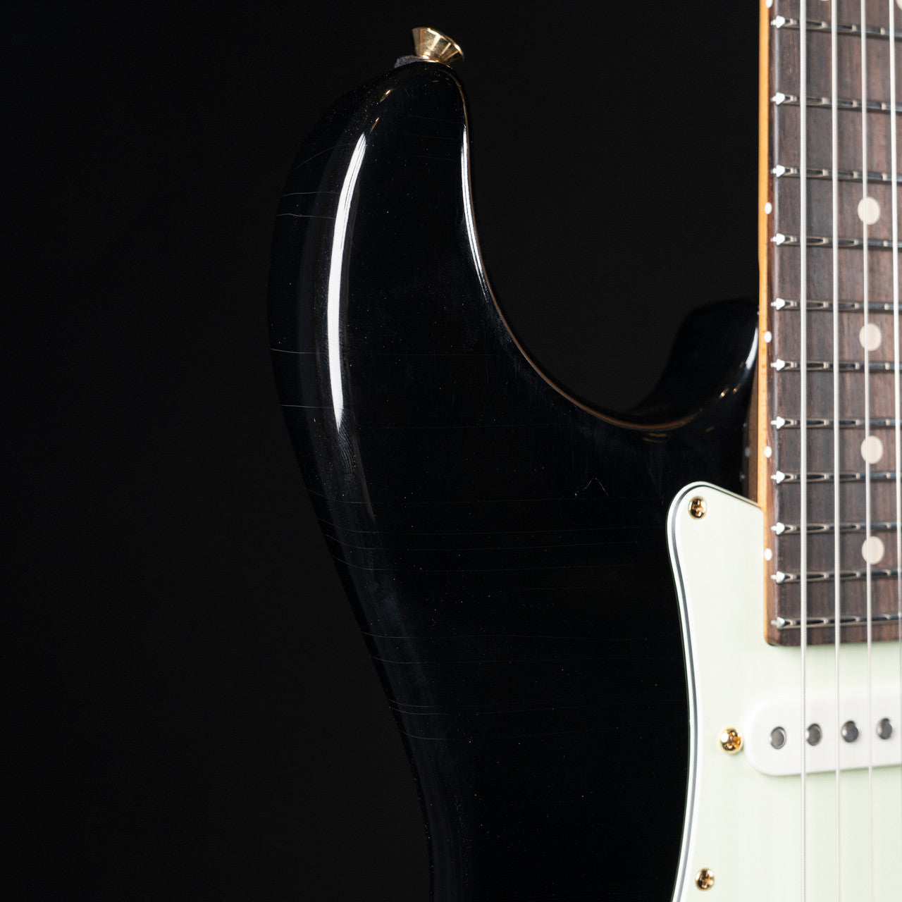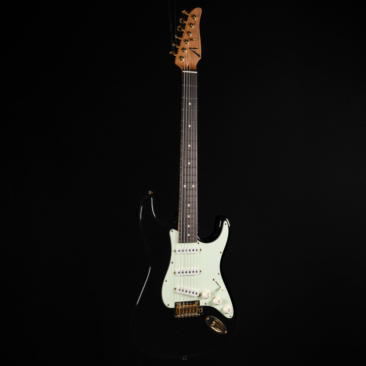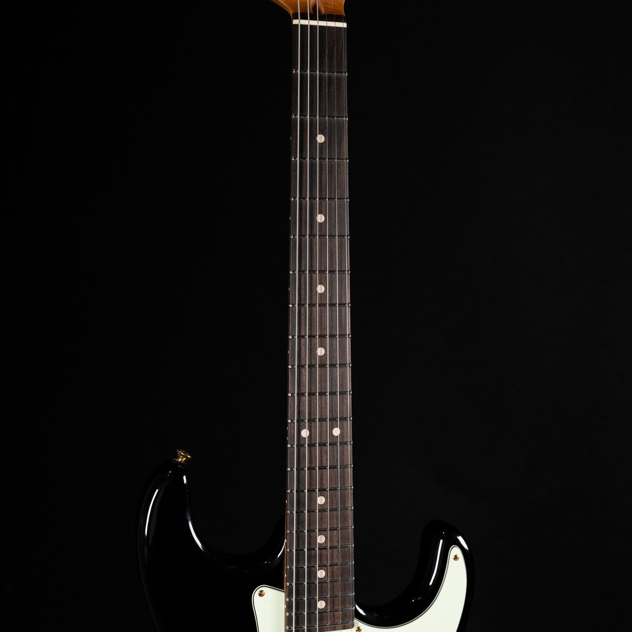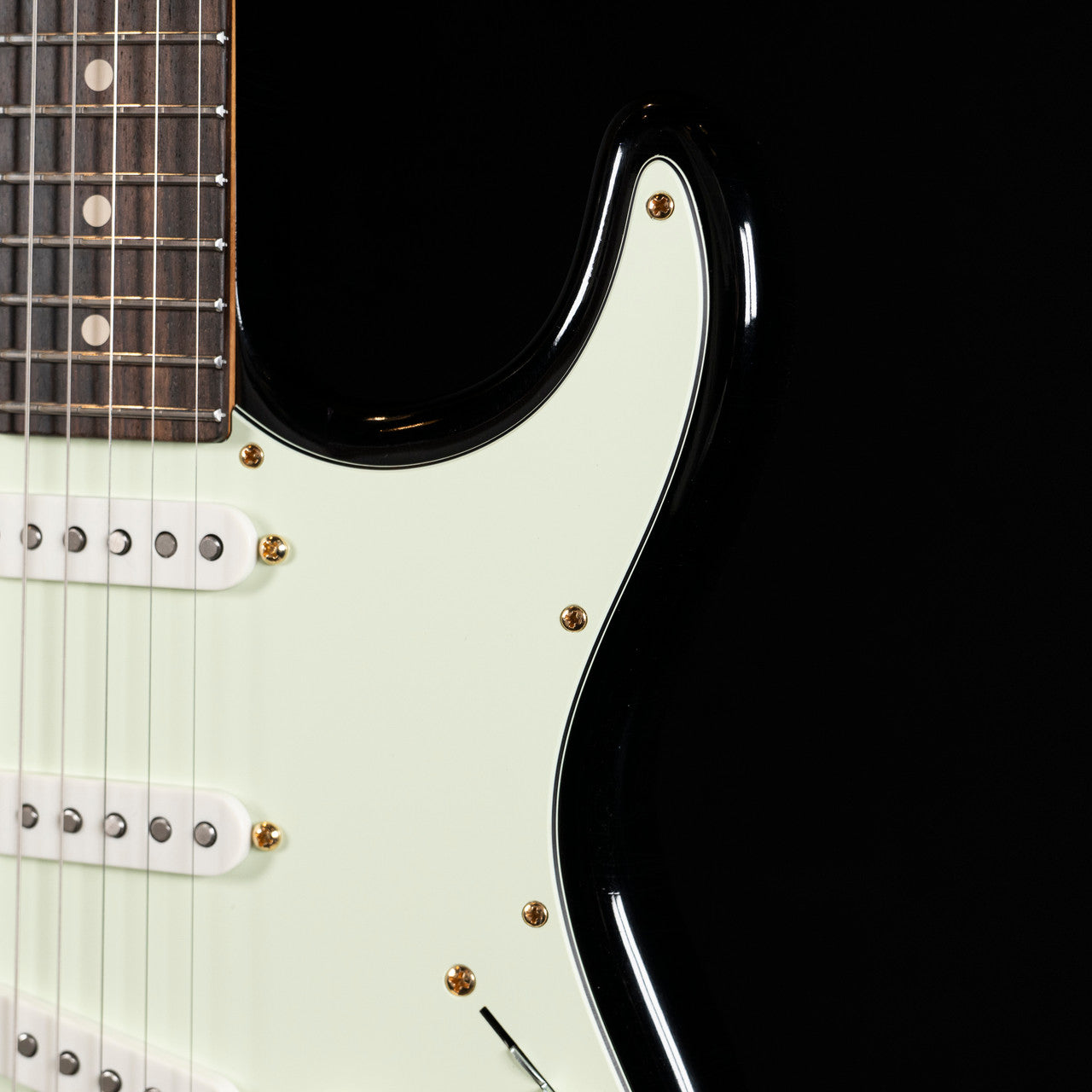 The Tom Anderson Icon Classic blends timeless style with exceptional modern craftsmanship, and this In-Distress Level 1 example in Black is a perfect showcase. The subtle relic finish gives it just the right amount of vintage vibe — lightly aged without going over the top — complemented beautifully by gold hardware and a striking mint green pickguard for a classy yet bold aesthetic. In fact, this particular build is spec’d similarly to a well-known guitar John Mayer used to play, giving it a familiar and iconic look right out of the case.