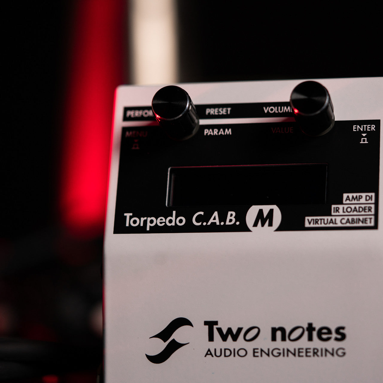 Two notes’ highly realistic cab sim is achieved by use of convolution. Two notes started from that technology and brought it much further, to accurately reproduce the characteristics of the whole miking chain (speaker, microphone, preamplifier, studio room acoustic). Many parameters influence the sound of your guitar or bass rig when it comes to recording. Taking good care of the cabinet selection and miking will dramatically improve the sound of your takes. The Torpedo cab sim reproduces the tiniest variations of a cabinet behavior (such as its frequency response). Move the microphone in the virtual studio room thanks to the Torpedo IR synthesis: all the settings you need to achieve great recordings are here. Because we want you to express your full potential, the Torpedo processing is compatible with third-party IRs, and the Torpedo C.A.B. M can load mono files in high resolution, up to 200ms in real time.