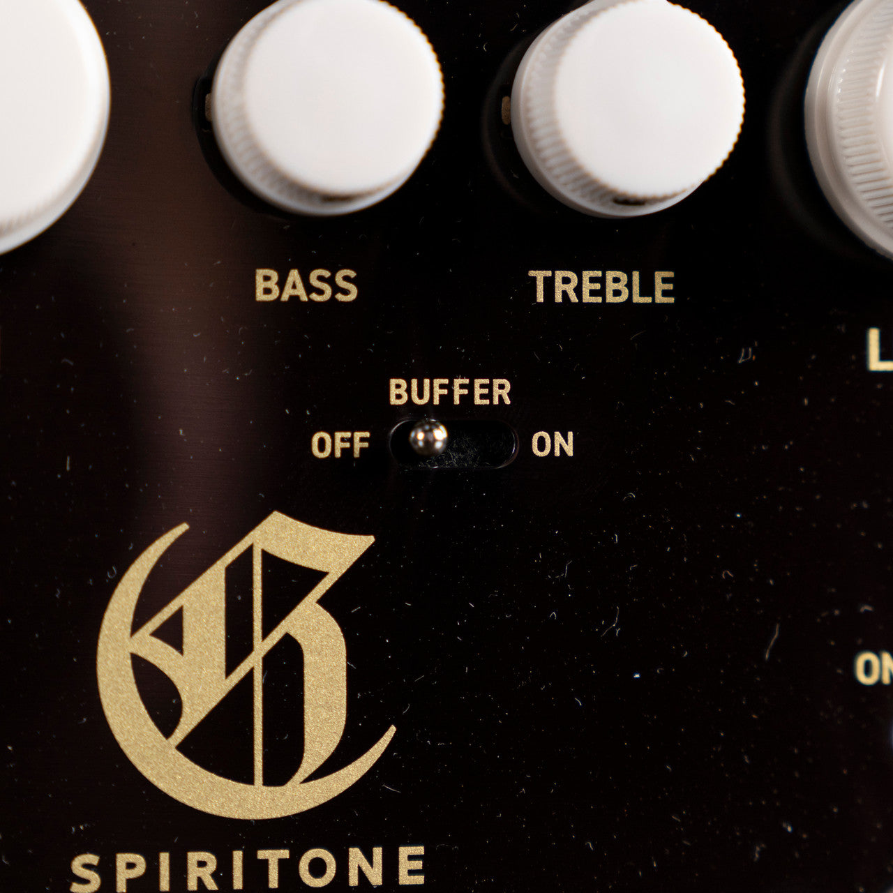 Besides the main controls of the SPIRITONE, the SAT (saturation) trimmer function allows fine-tuning of the saturation-like sound generated by the power tubes of the tube amplifiers. An ON/OFF toggle switch for the input buffer circuit. The SAT (saturation) can be finely adjusted according to the combination of the equipment/gear used and adapting to the live venue.