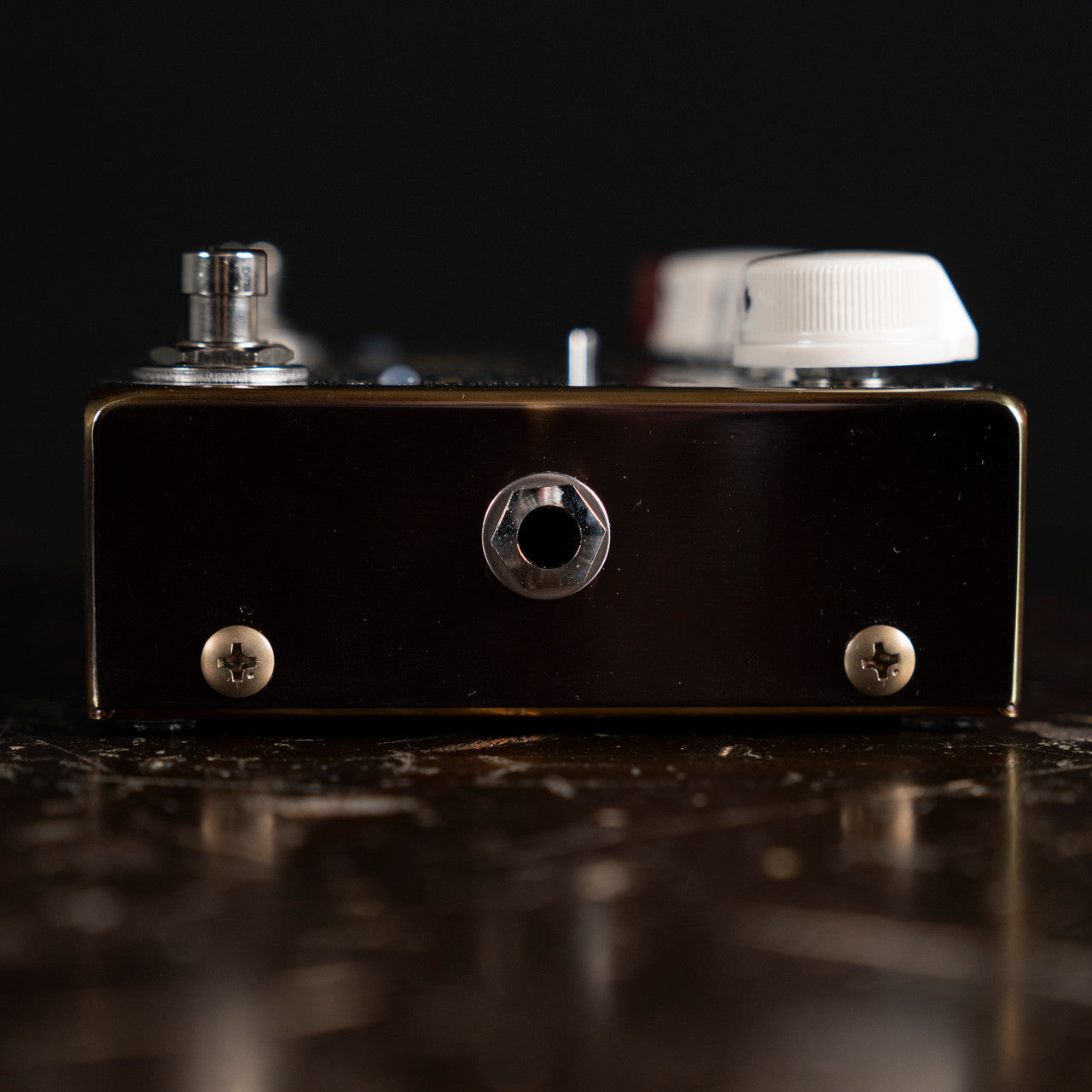 Our well-known custom components, such as custom-ordered foot switches, input/output jacks, and capacitors, as well as rare *N.O.S. components, are applied to the SPIRITONE. This product has been specially designed to reach the “joy of ownership” of many guitar players, not only focusing on the sound/tone but also by applying the custom-made color (ash white) Bakelite knobs.