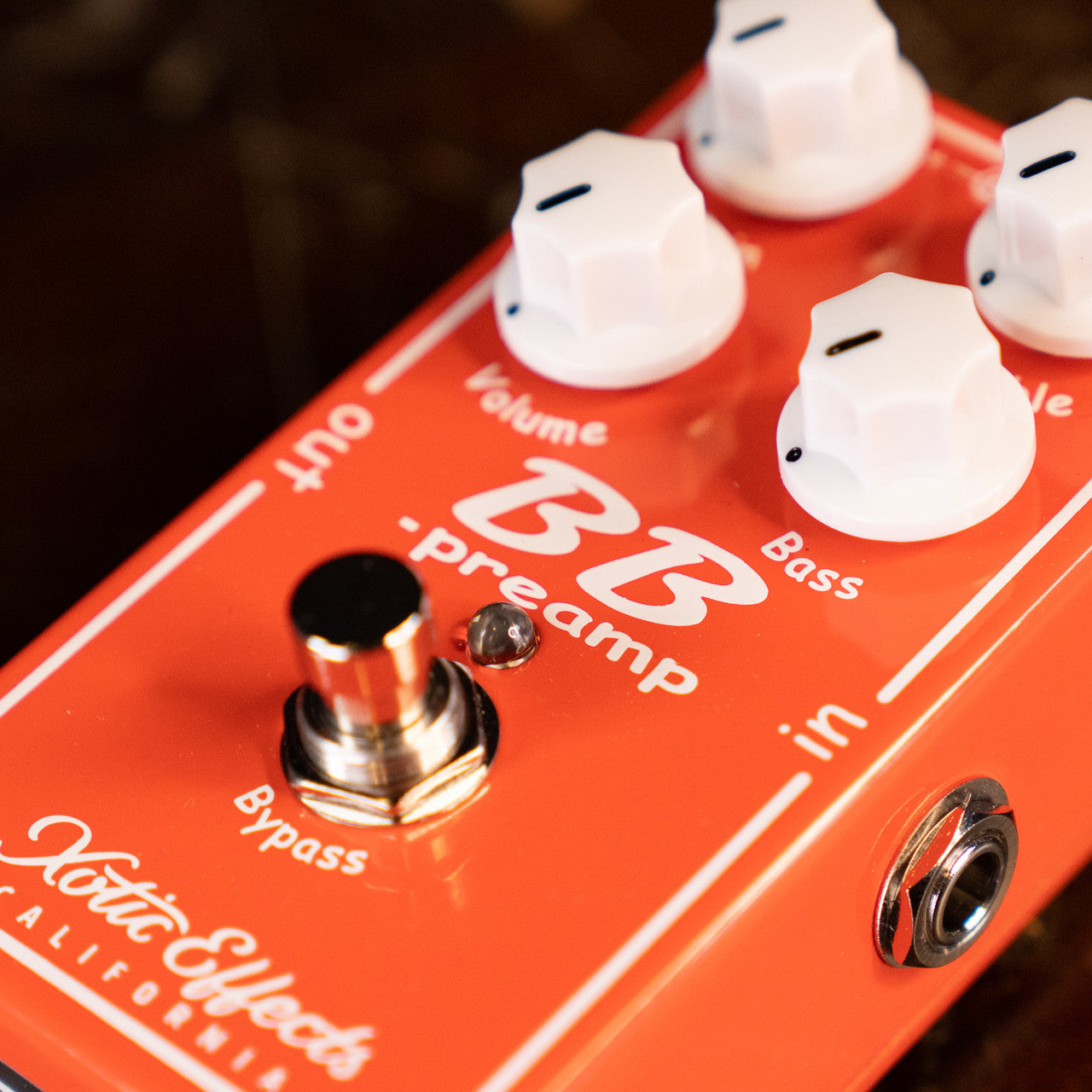 The BB Preamp offers a wide variety of sounds. It's capable of a 30dB+ clean boost with an adjustable ±15dB two band active EQ which adds a wide range of harmonic content to your ideal sound. The BB also utilizes a pre-gain stage which allows the pedal to go from a very pristine clean to a very smooth, compressed, overdriven sound.