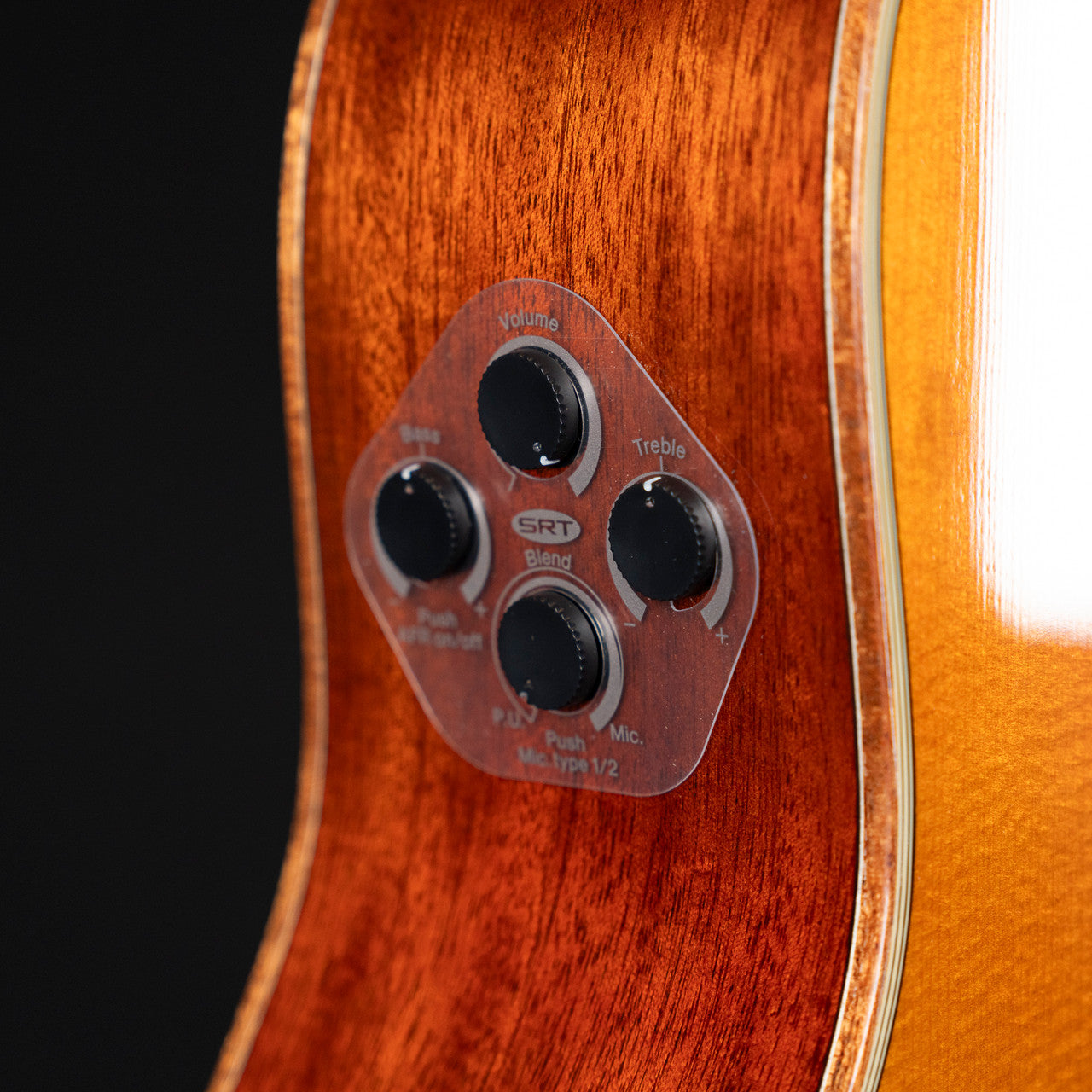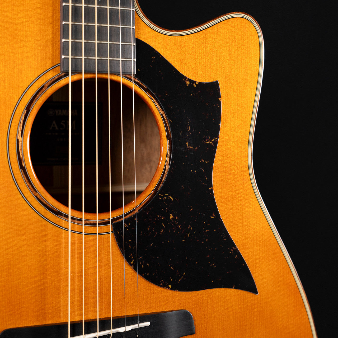 The A5M Acoustic Electric Guitar is a traditional western body cutaway guitar features all-solid mahogany back and sides and a hand-selected Sitka spruce top with original Yamaha A.R.E. wood-torrefaction technology. Natural, dynamic, plugged-in tone from the SRT2 pickup system perfectly suit your performance on stage, and the made-in-Japan premium build quality will gratify advanced players' desires.